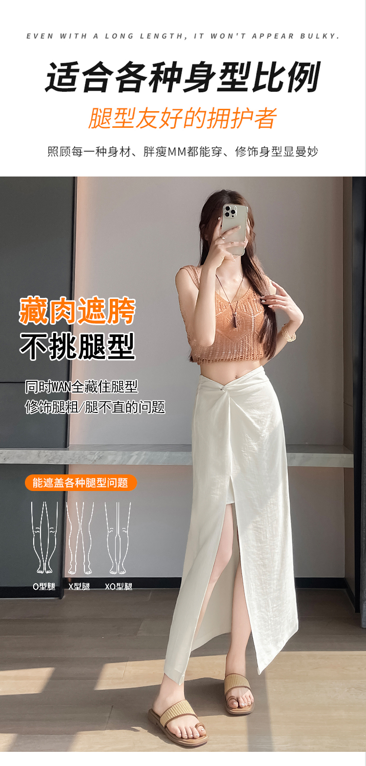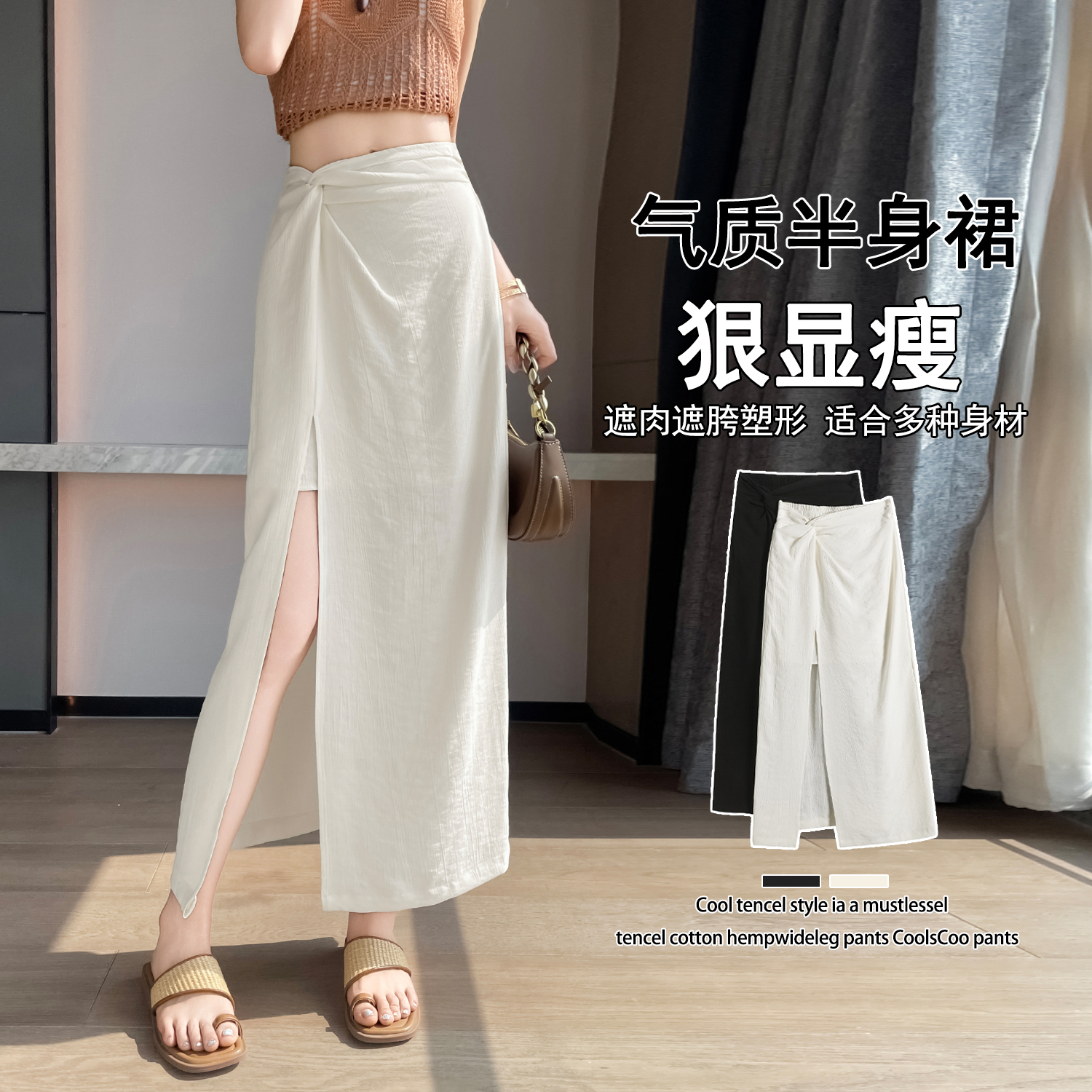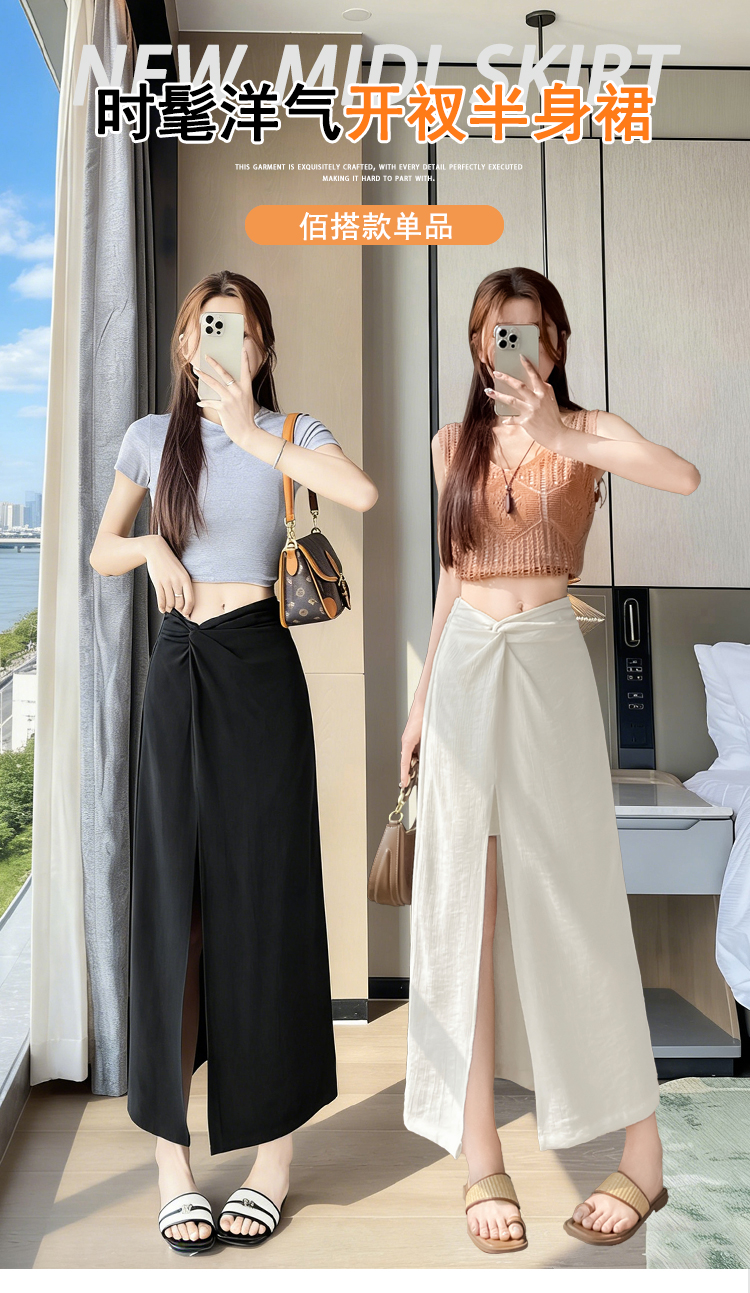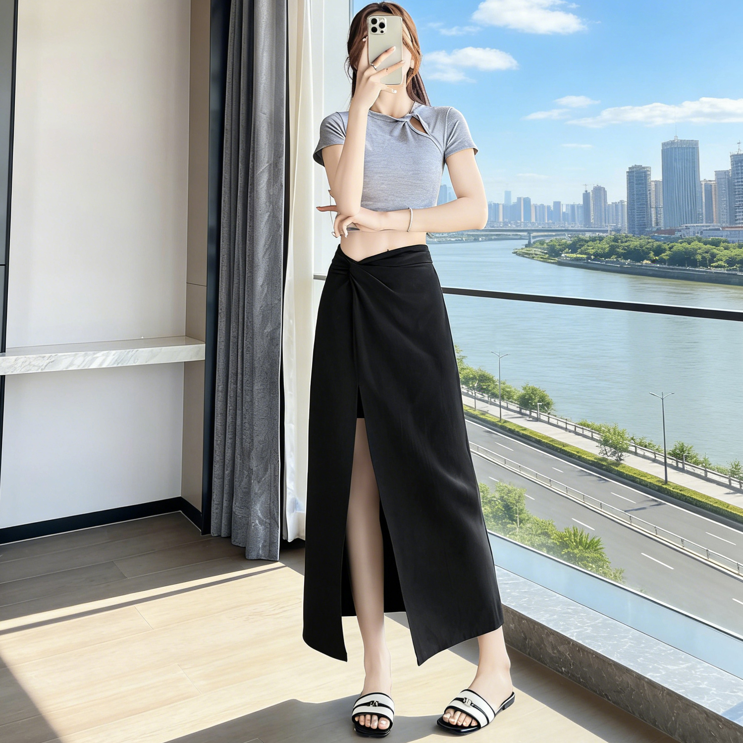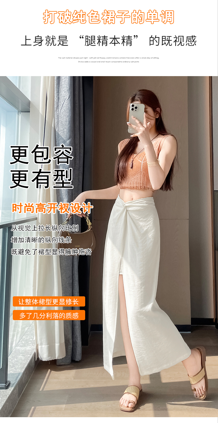 실사 한 부서 디자인 센스 매듭 반신 스커트 여성 2026 여름 새로운 품격 트임 하이웨이스트 슬림해 보이는 롱 스커트