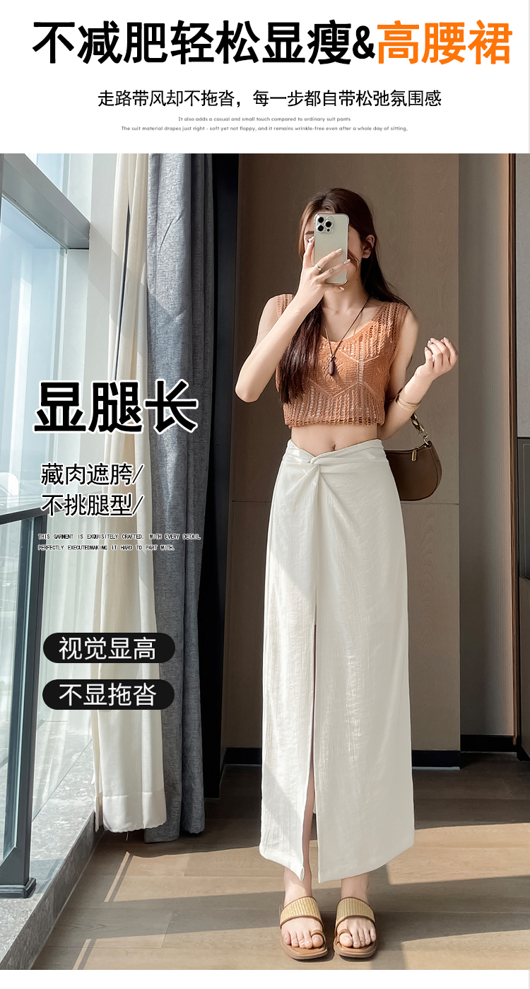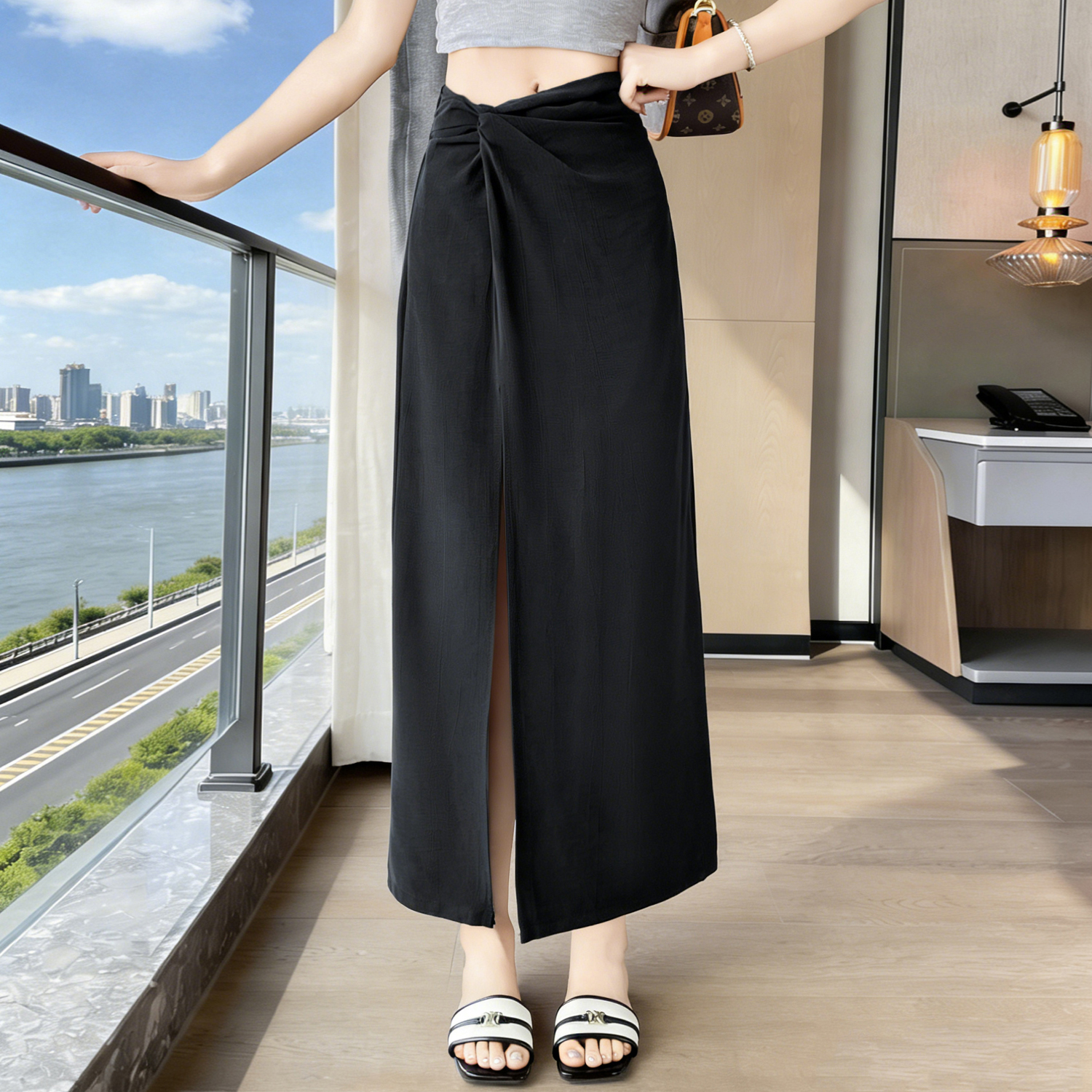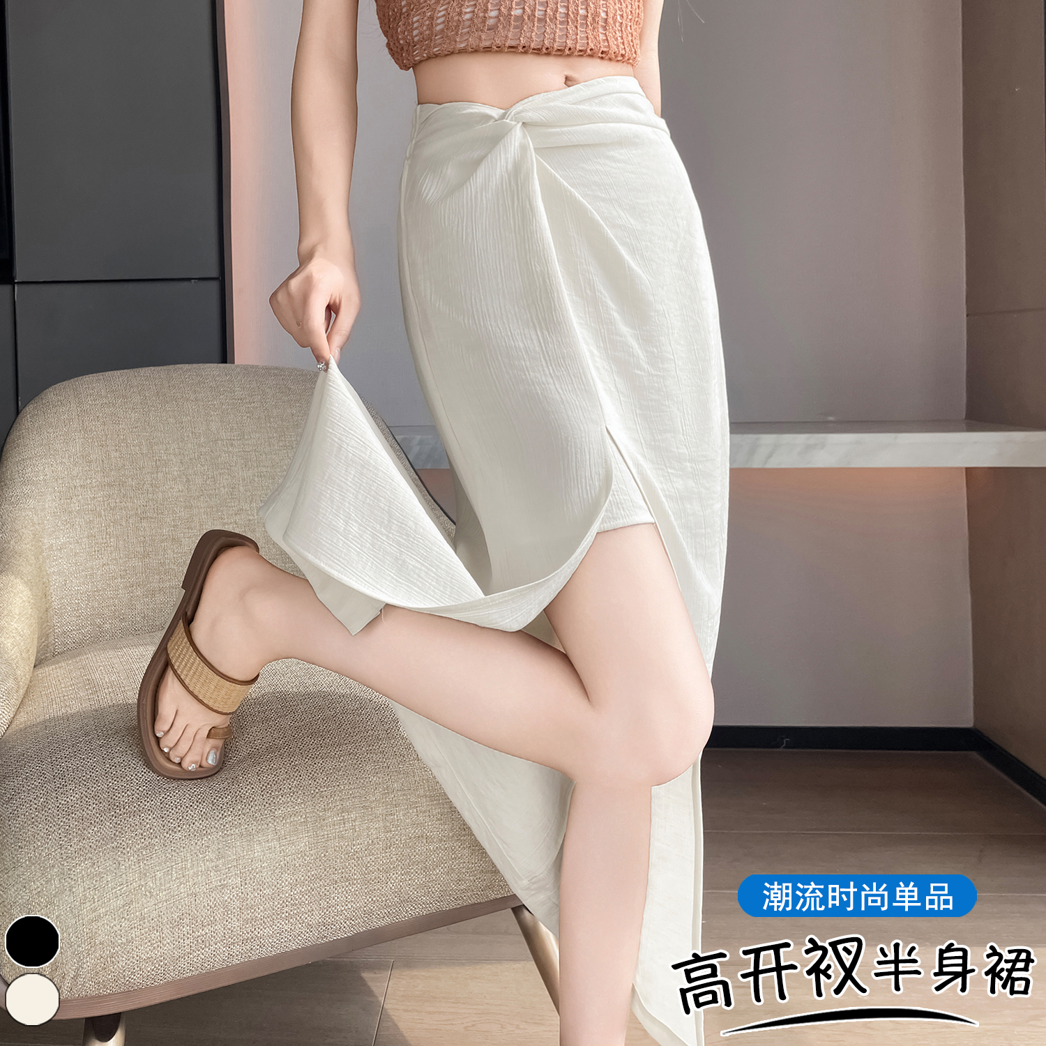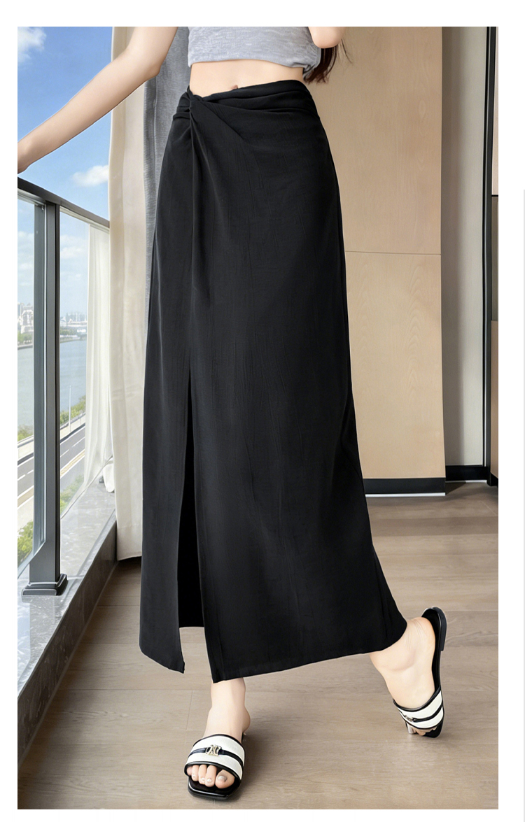 실사 한 부서 디자인 센스 매듭 반신 스커트 여성 2026 여름 새로운 품격 트임 하이웨이스트 슬림해 보이는 롱 스커트