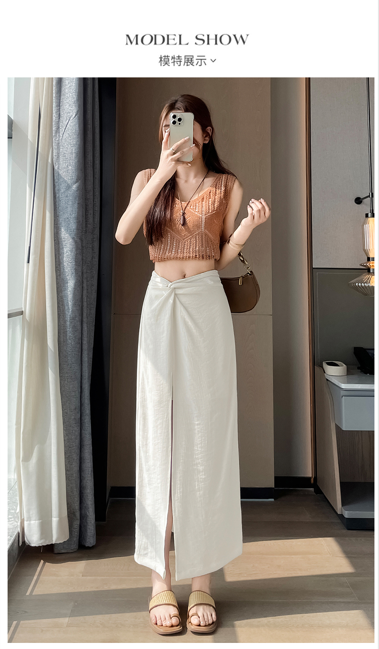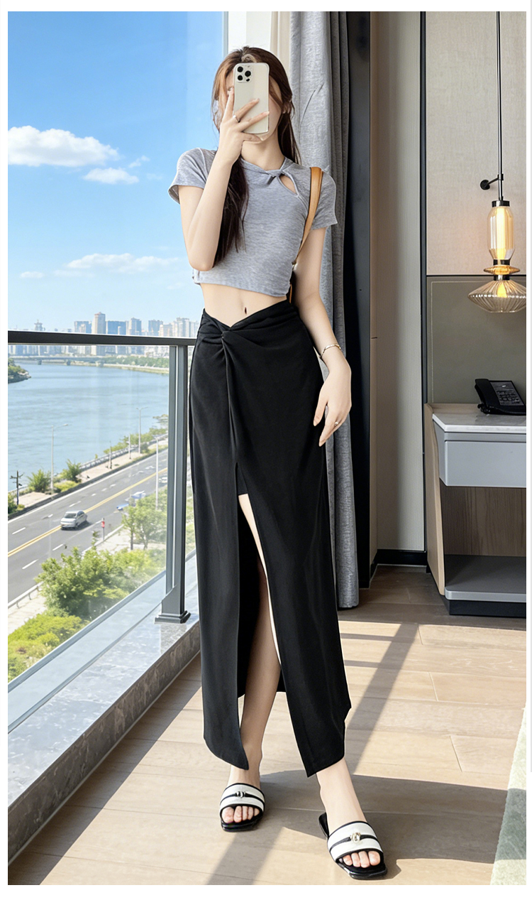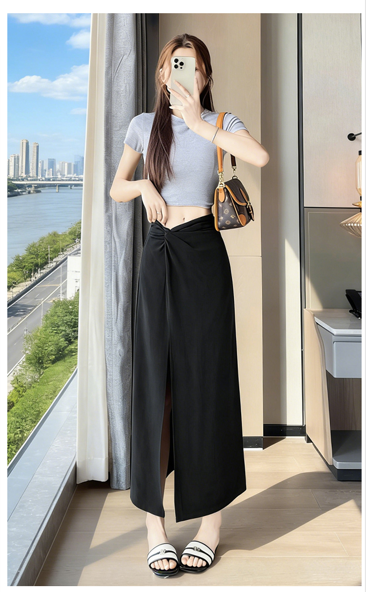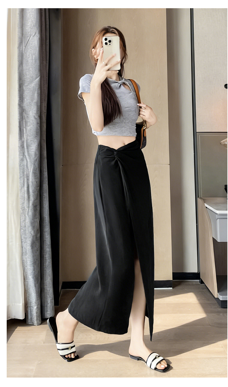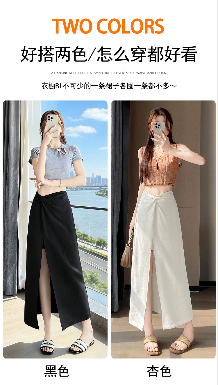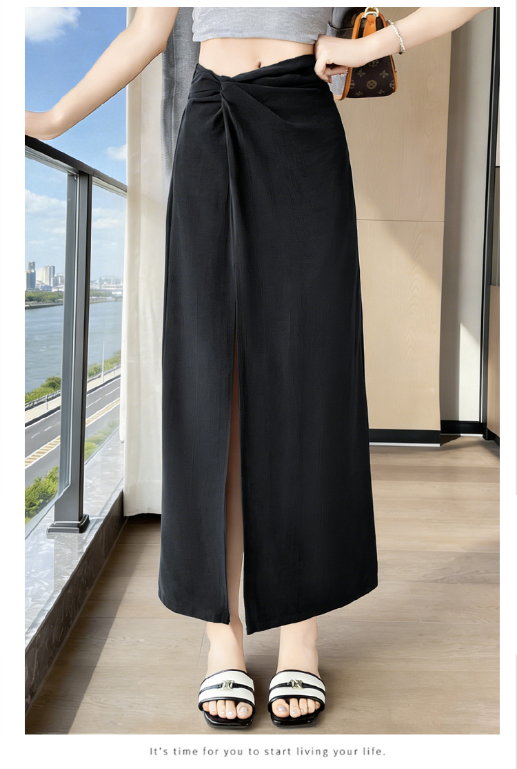실사 한 부서 디자인 센스 매듭 반신 스커트 여성 2026 여름 새로운 품격 트임 하이웨이스트 슬림해 보이는 롱 스커트