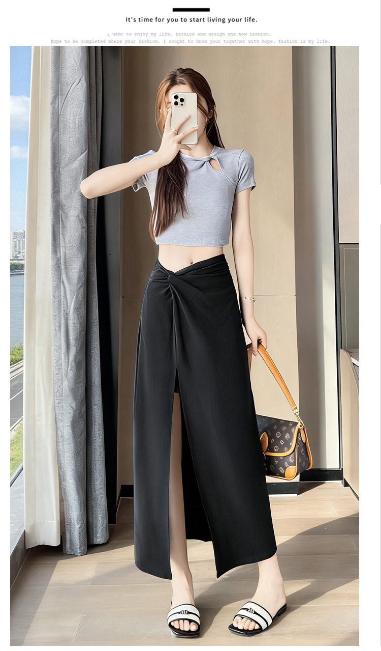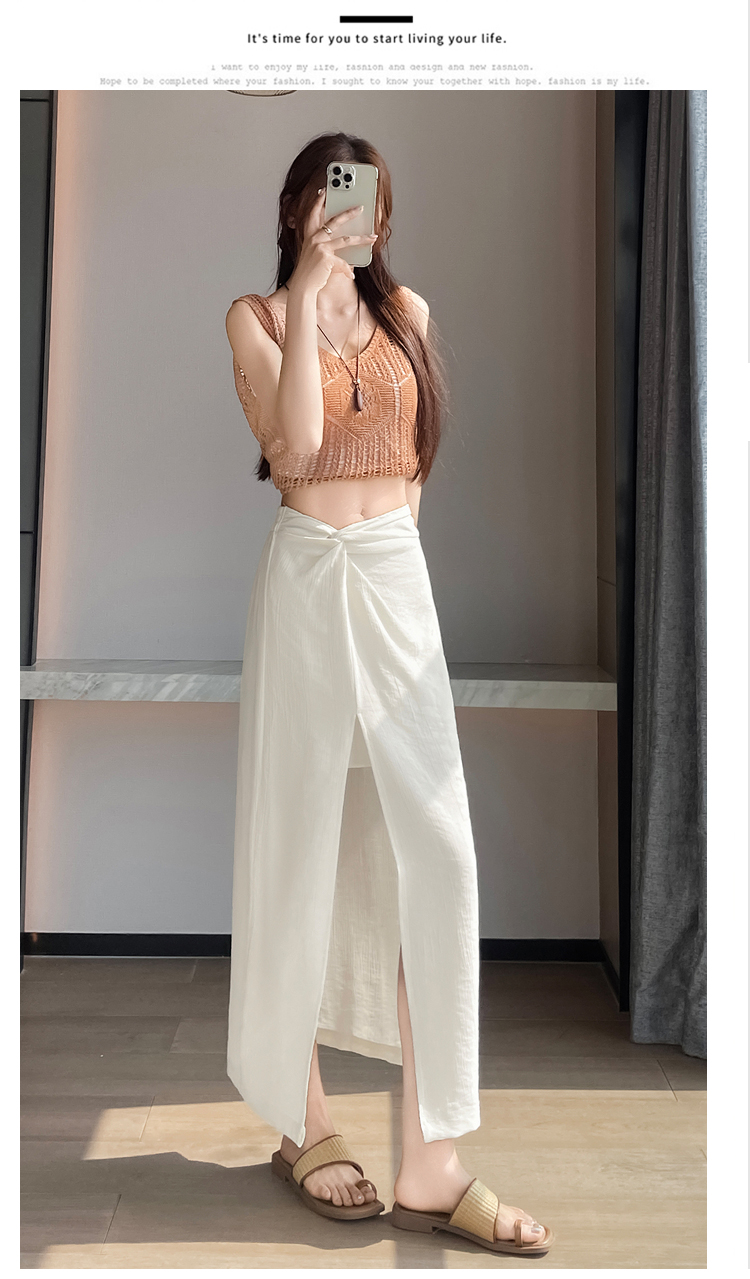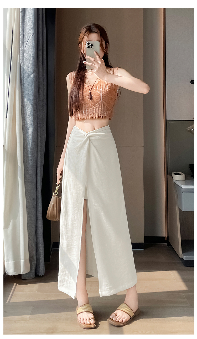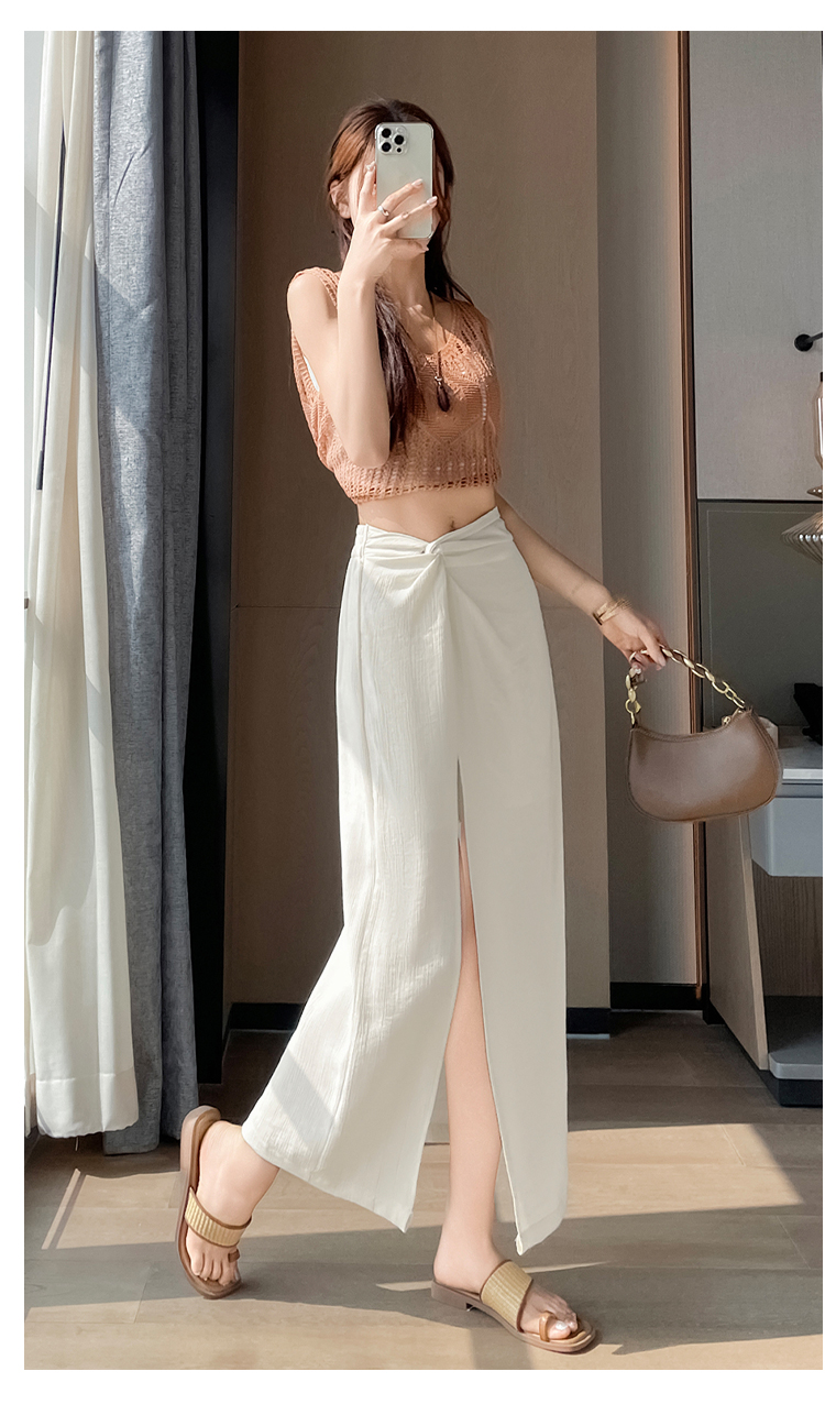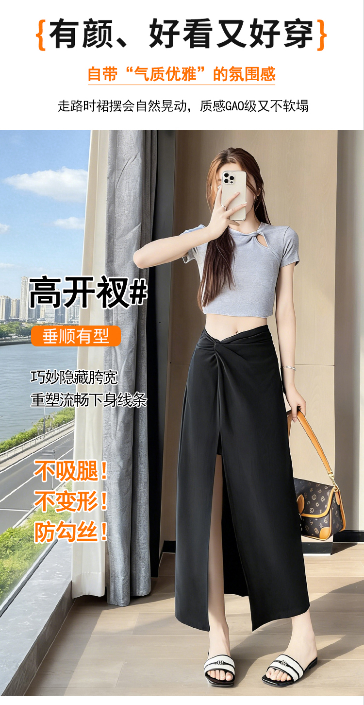 실사 한 부서 디자인 센스 매듭 반신 스커트 여성 2026 여름 새로운 품격 트임 하이웨이스트 슬림해 보이는 롱 스커트