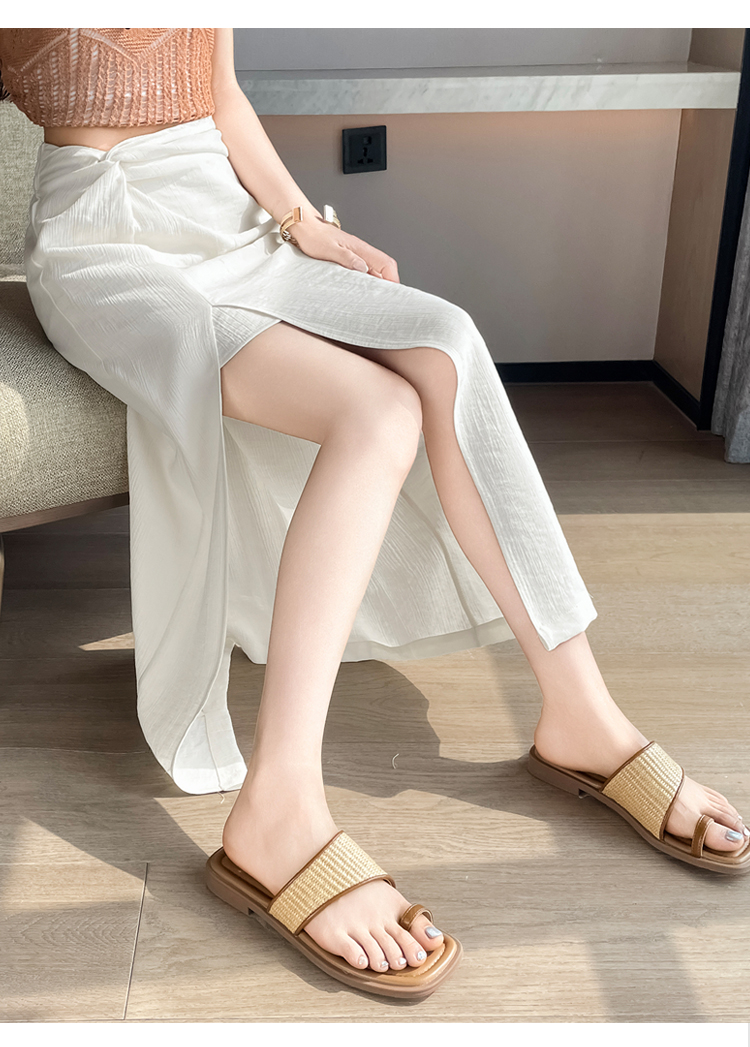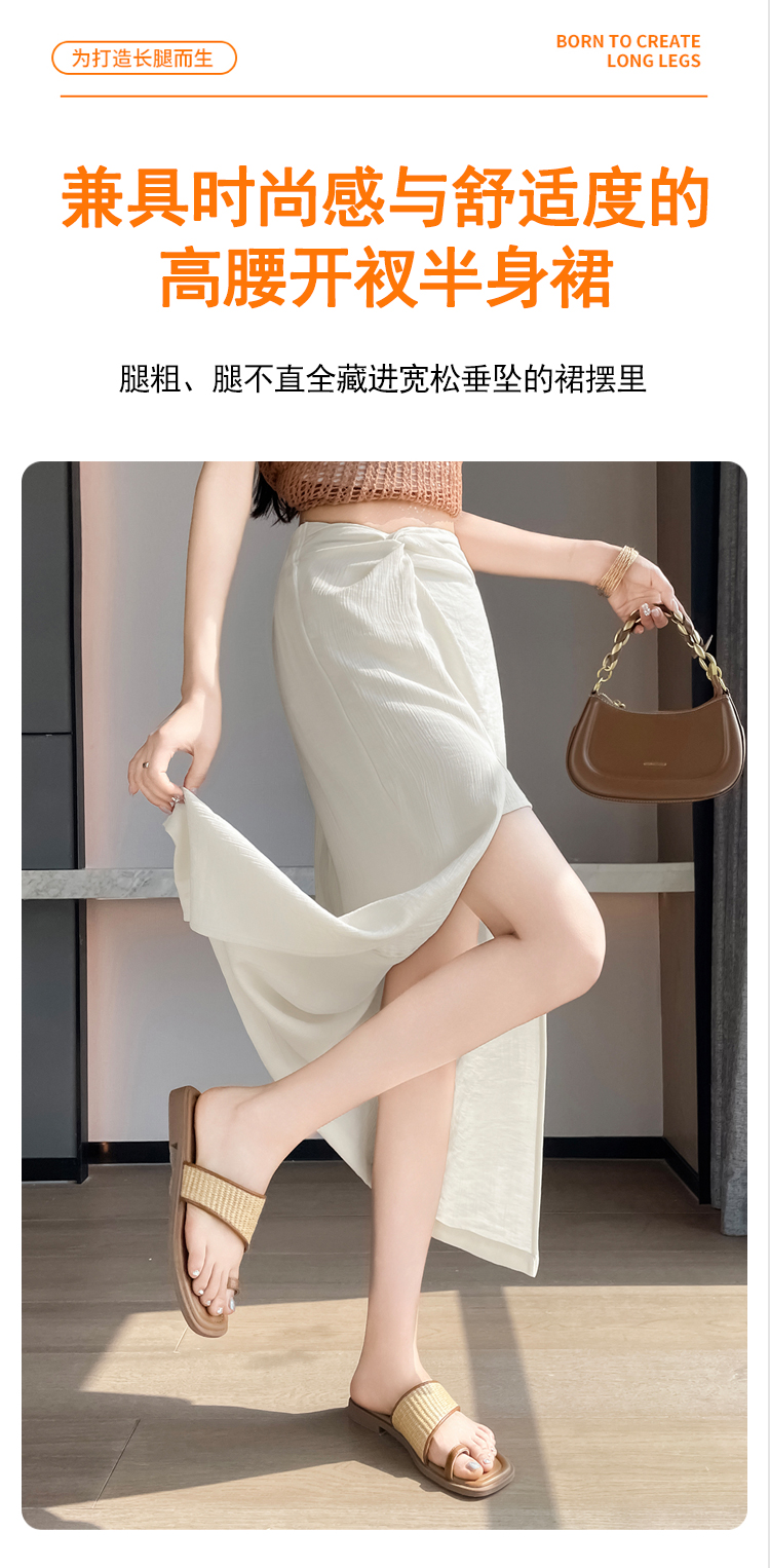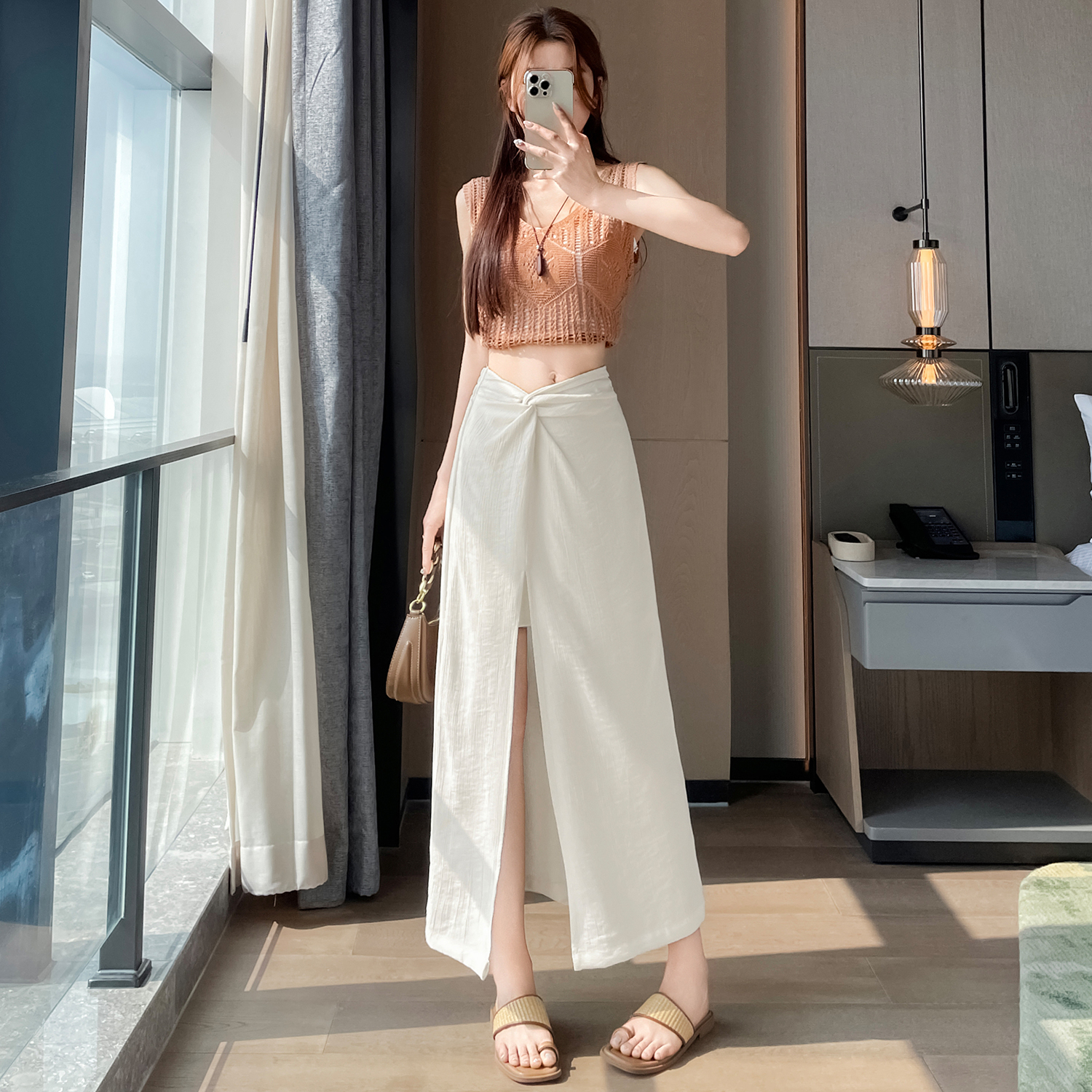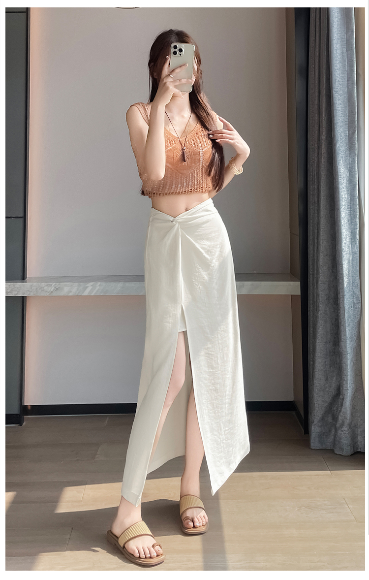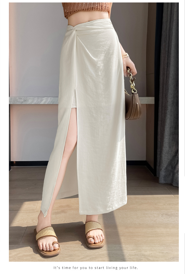 실사 불규칙 주간 실크 면 린넨 반신 스커트 여성 여름 트임 디자인 센스 하이웨이스트 길다 치마
