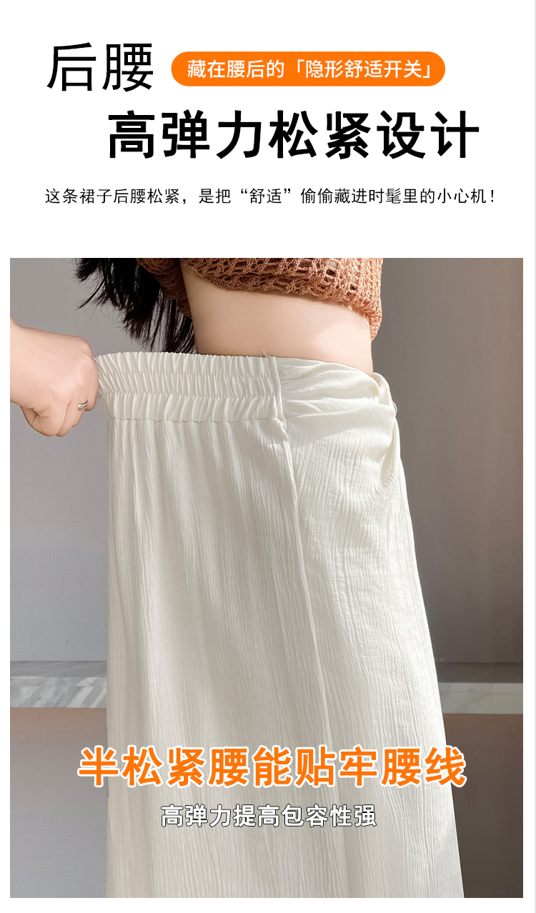 실제 촬영 재고 있음 허리밴드 체크무늬 디자인 센스 프릴 도루 센스 와이드 레그 팬츠 다용도 슬림해 보이는 캐주얼 바지