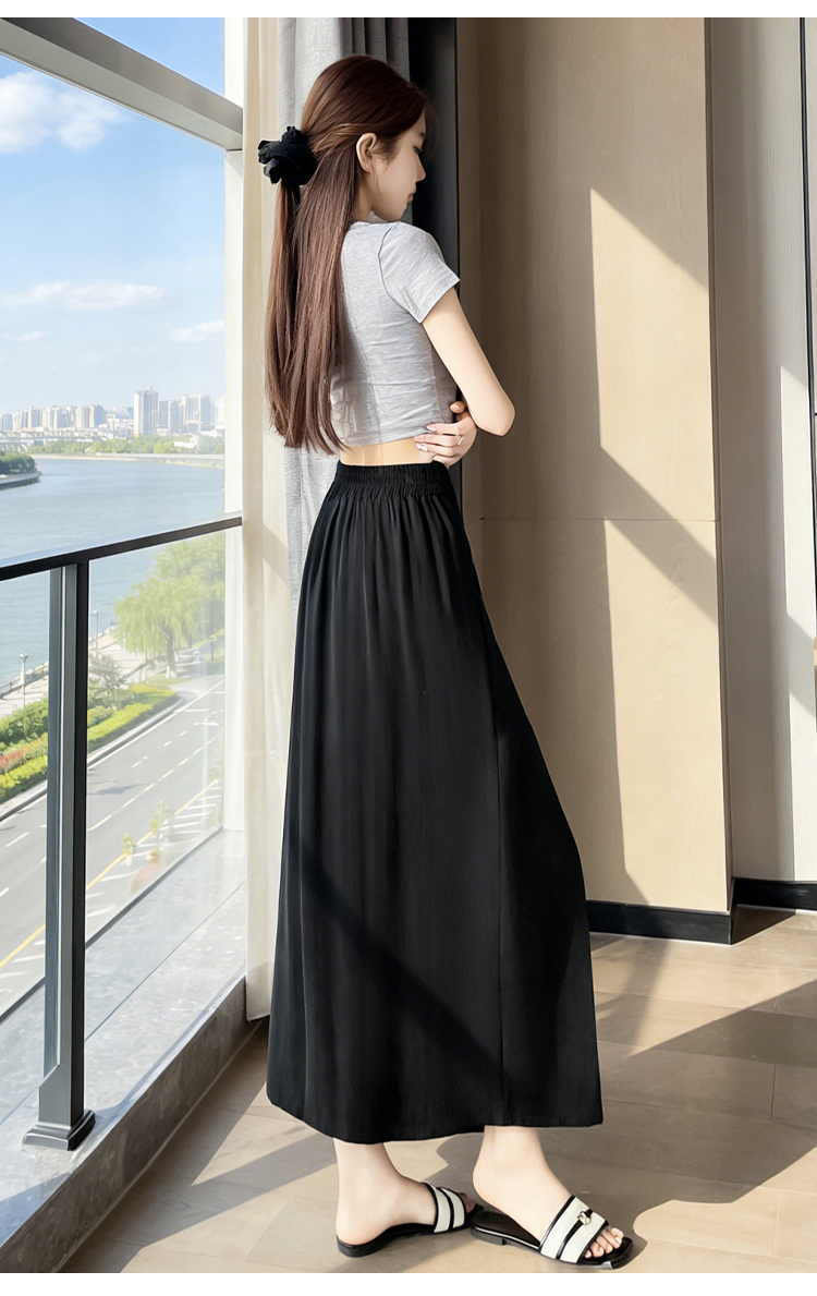 실제 촬영 정가 높은 허리 슬림 플리츠 정장 롱 스커트 와일드 빅 스윙 스커트 하프 바디 A 라인 치마