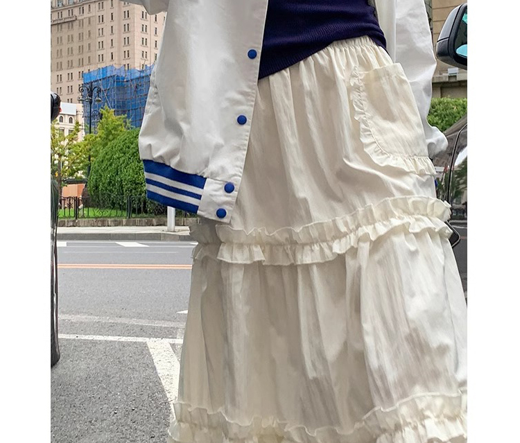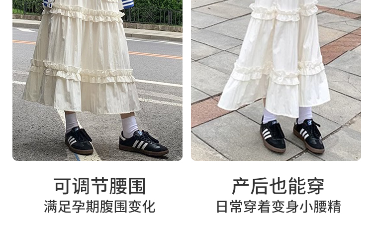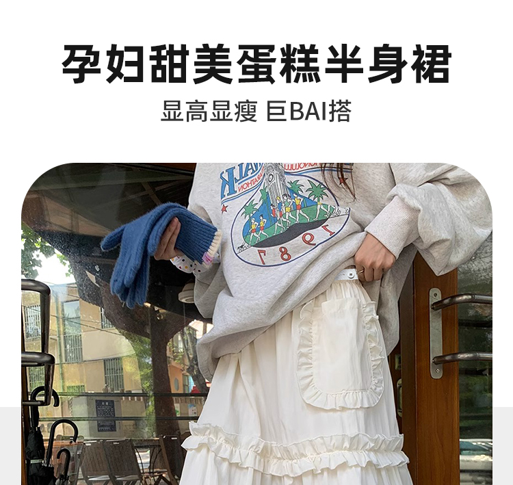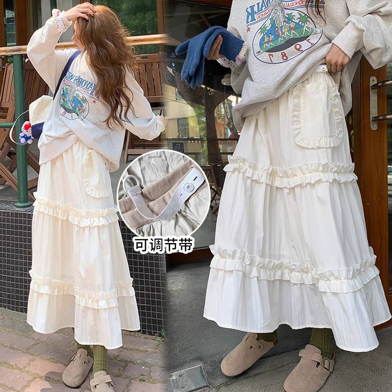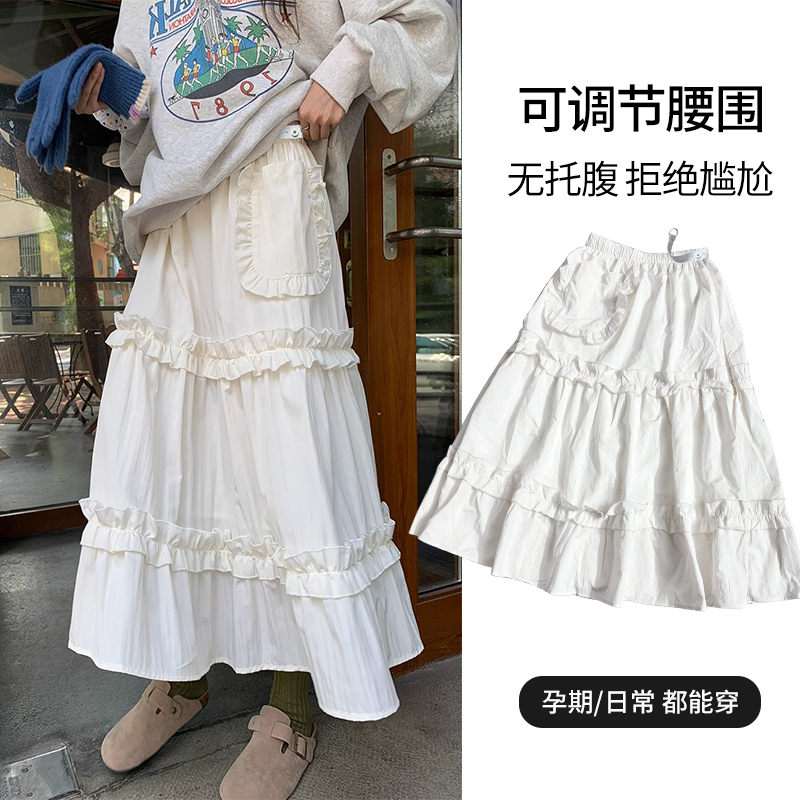 주간 고양이 품질 임산부 가을 섹션 케이크 드레스 레이스 주머니 없음 복부 지지 고무 밴드 조정 롱 스커트 반신 스커트