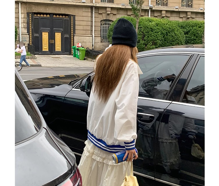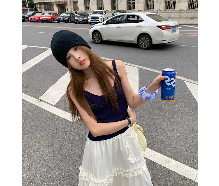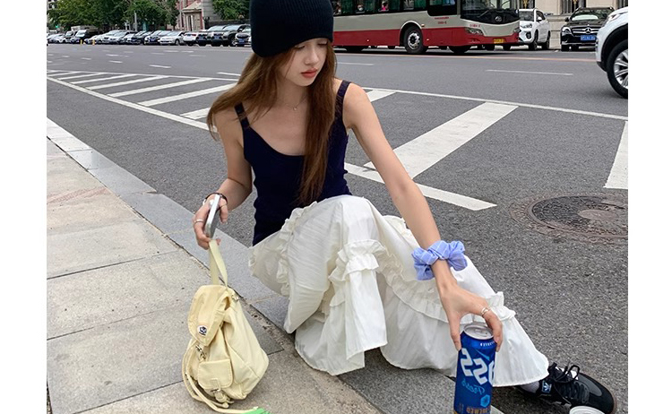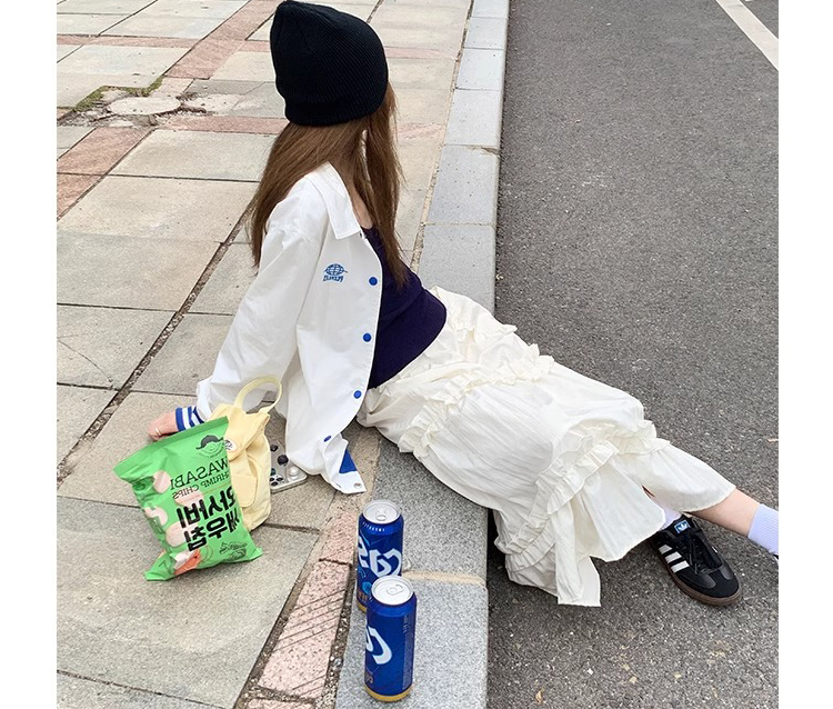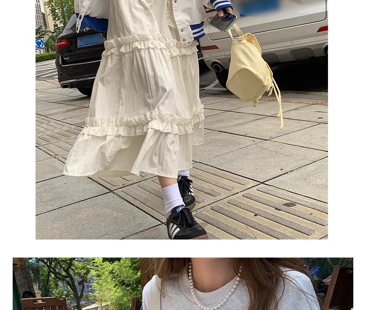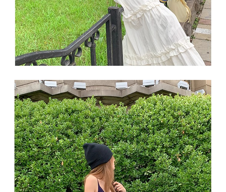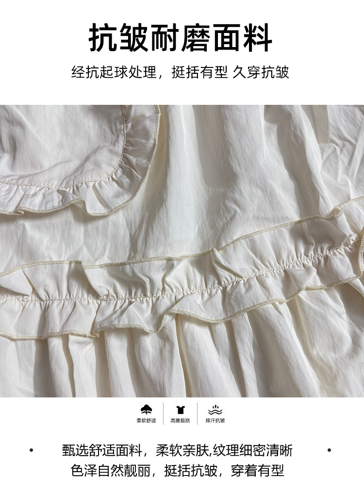 주간 고양이 품질 실사 여름 다용도 임산부 프랑스식 디자인 센스 주름 거품 소매 맨위 분말 트임 롱 스커트