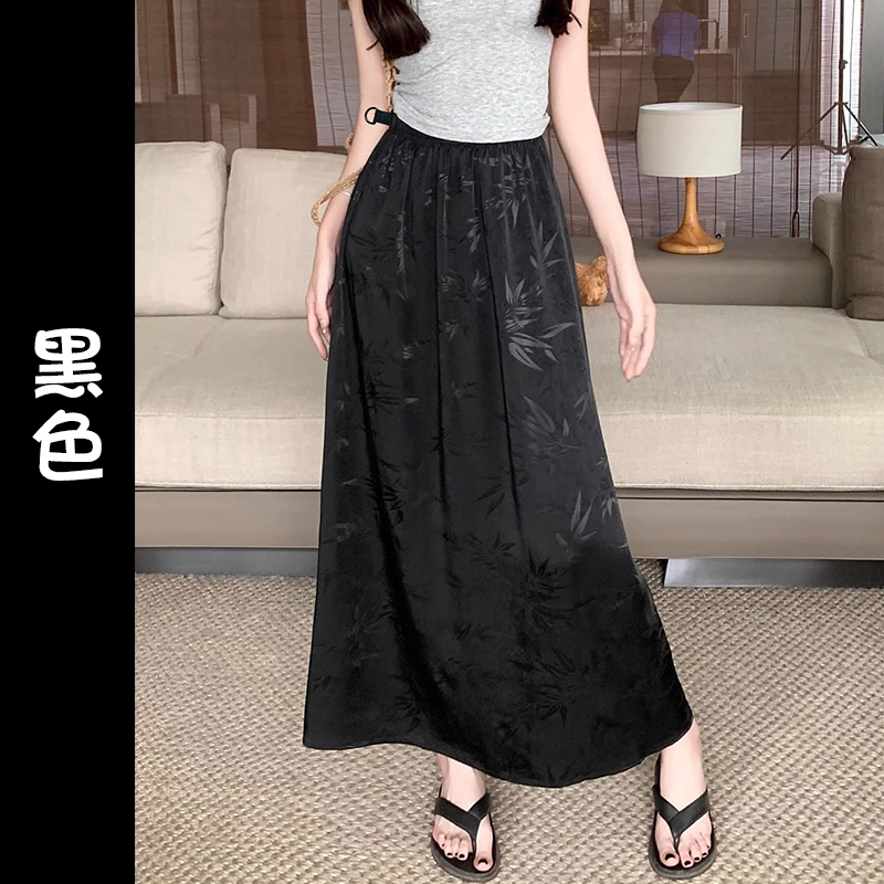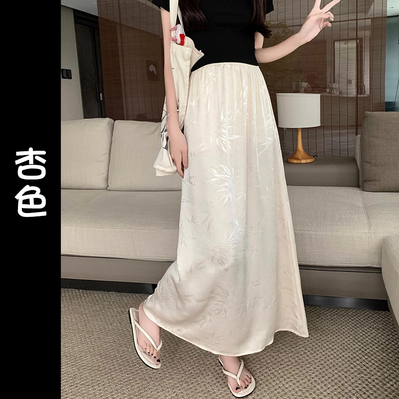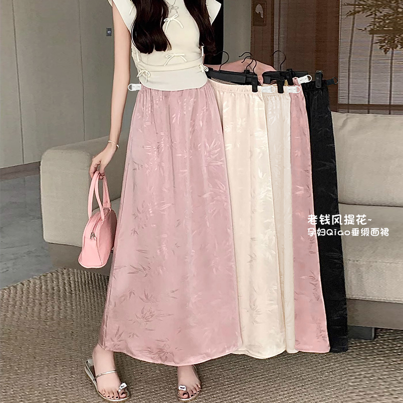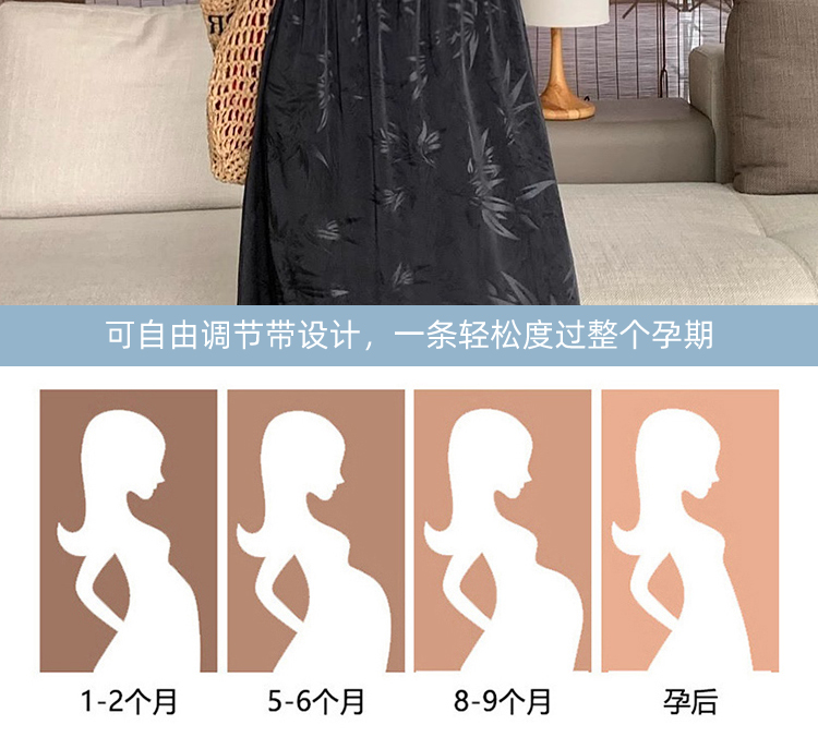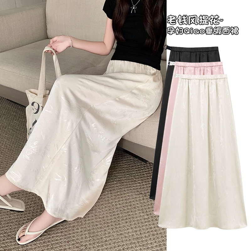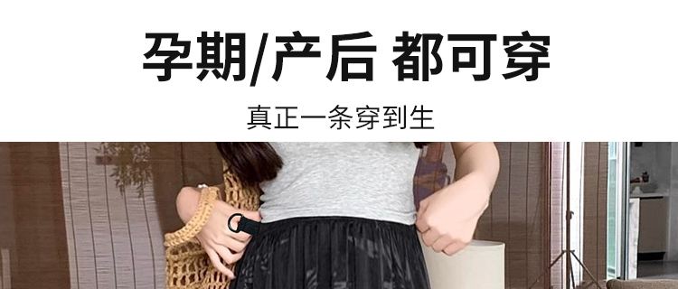 임산부 아세트산 새틴 똑똑한 주름 단색 다용도 반신 스커트 하이웨이스트 한 마디 복부 지지 중간 길이 스커트