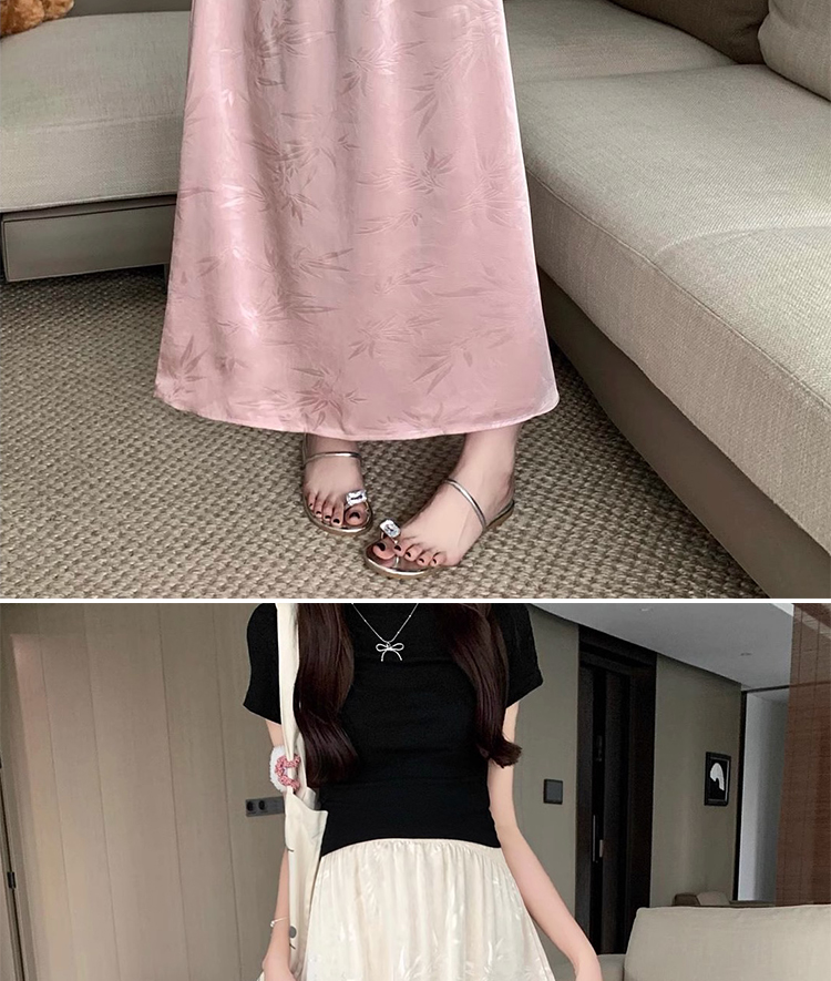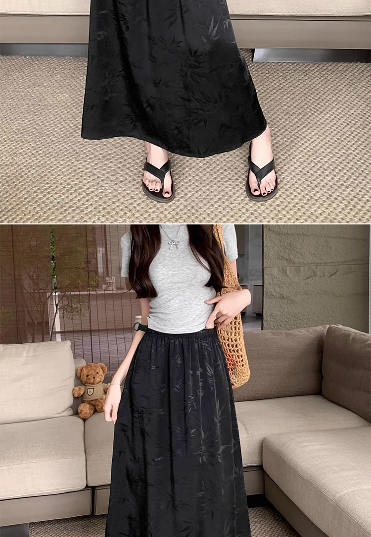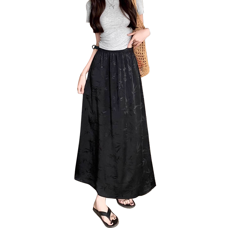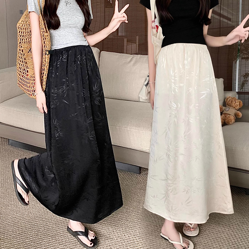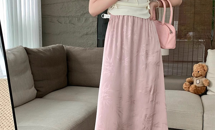 임산부 아세트산 새틴 똑똑한 주름 단색 다용도 반신 스커트 하이웨이스트 한 마디 복부 지지 중간 길이 스커트