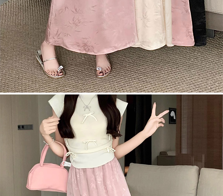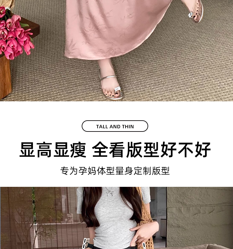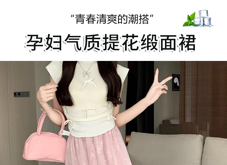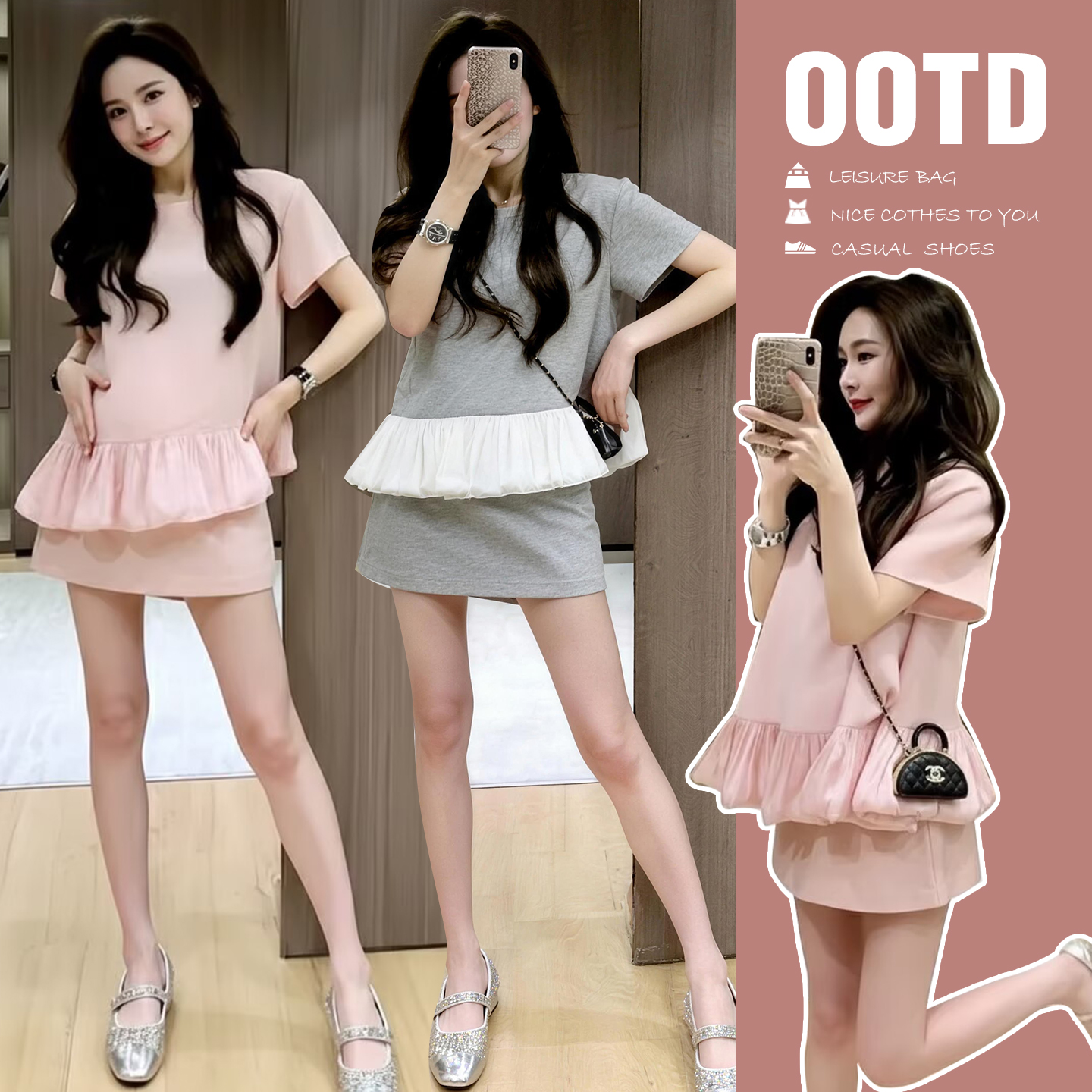 지금 임산부 세트 새로운 패치워크 디자인 루즈핏 맨위 프랑스식 달콤한 다용도 쇼트 스타일 주름 반팔 미니 스커트 세트