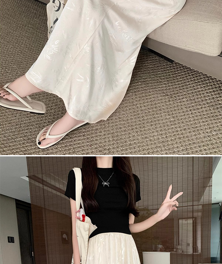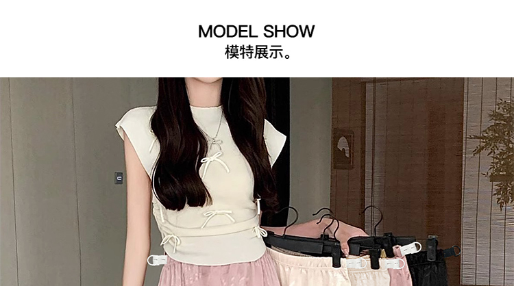 주간 고양이 품질 실사 여름 임산부 프랑스식 디자인 센스 주름 거품 소매 맨위 베이지 색 넓은 다리가 짧다. 바지
