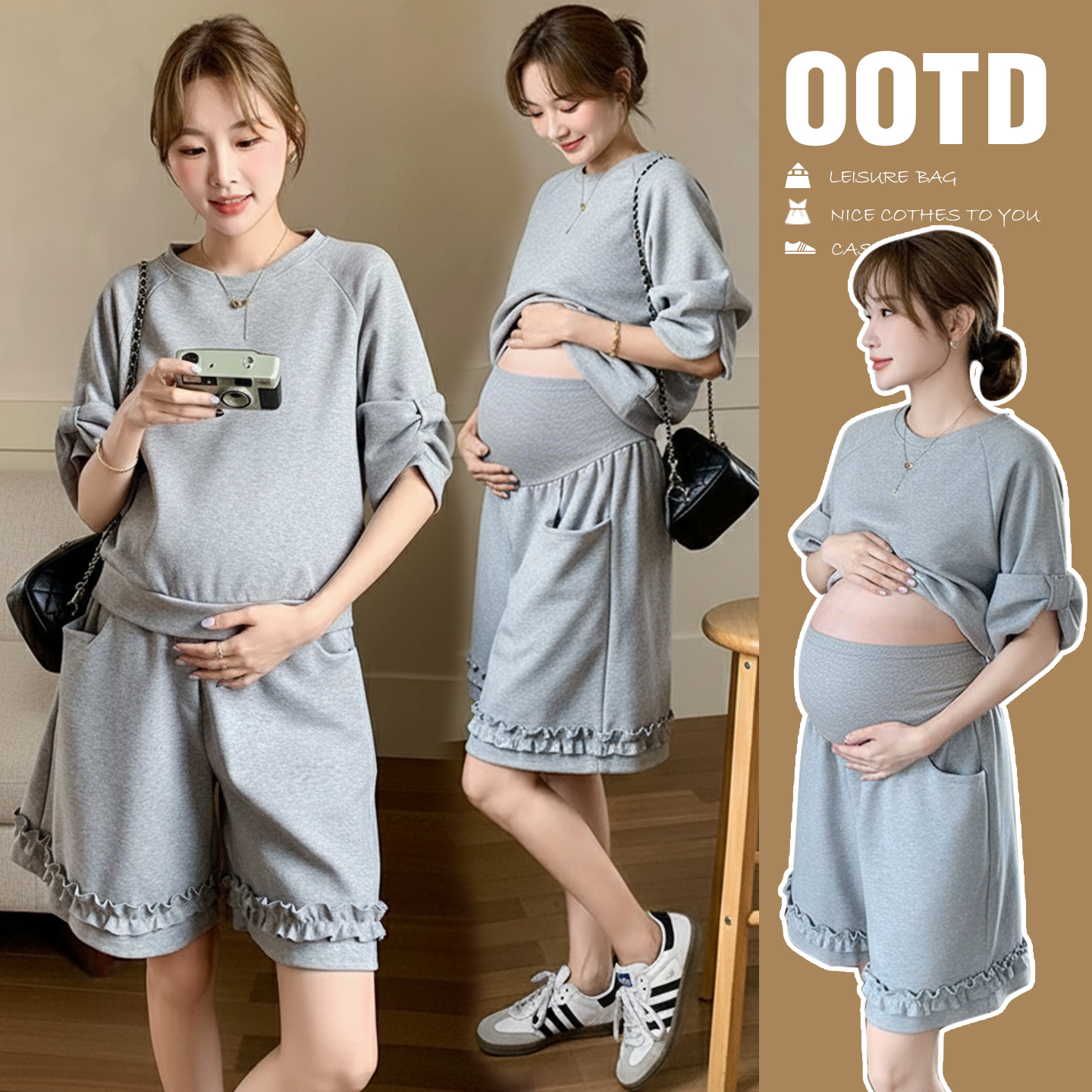 실사 임산부 세트 여름 새로운 한국 스타일 루즈핏 캐주얼 패션 임산부 투피스 세트 맨위 반바지