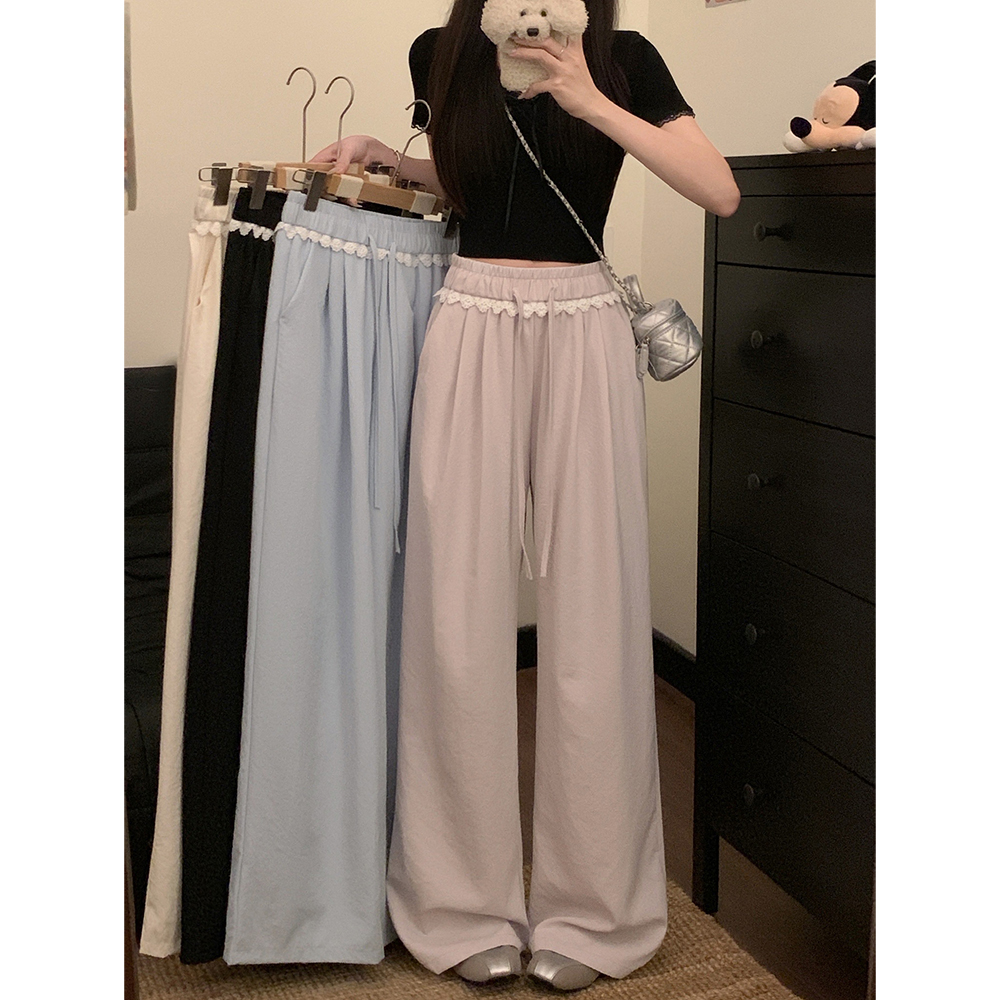 실사 2026 새로운 개성 레이스 와이드 레그 팬츠 펌프 로프 레이스업 허리밴드 캐주얼 루즈핏 바지 여성