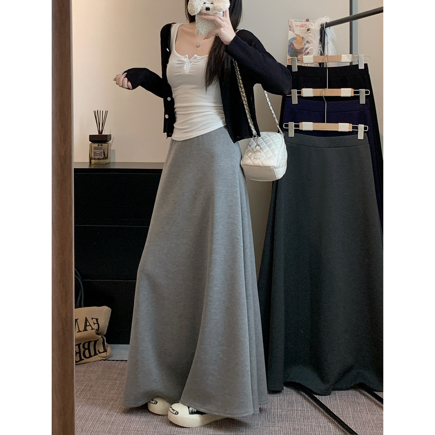 실사 2026 봄 새로운 반신 스커트 여성 레저 다용도 슬림해 보이는 중 롱 스커트 여성