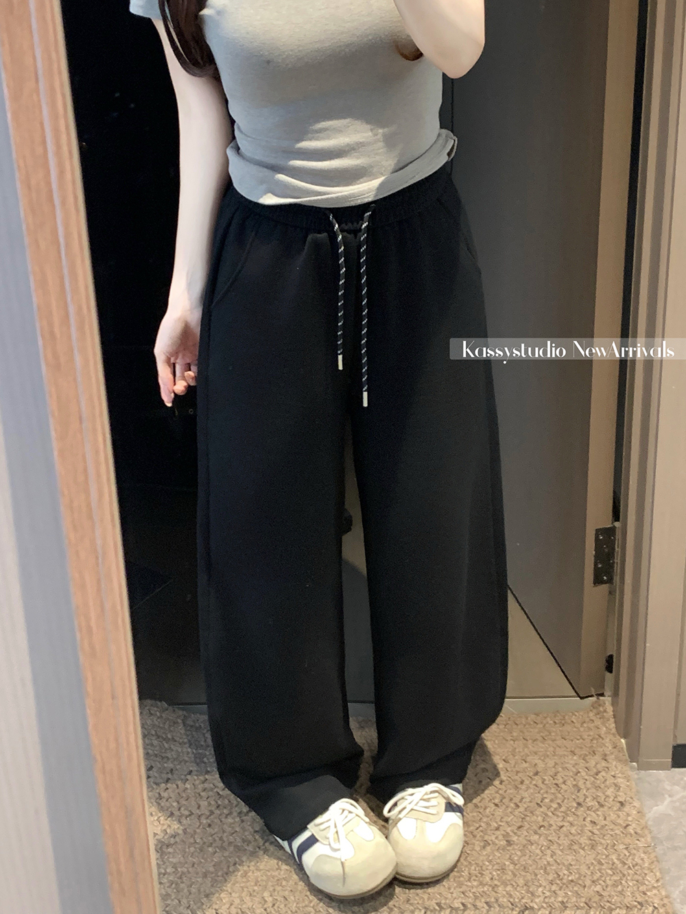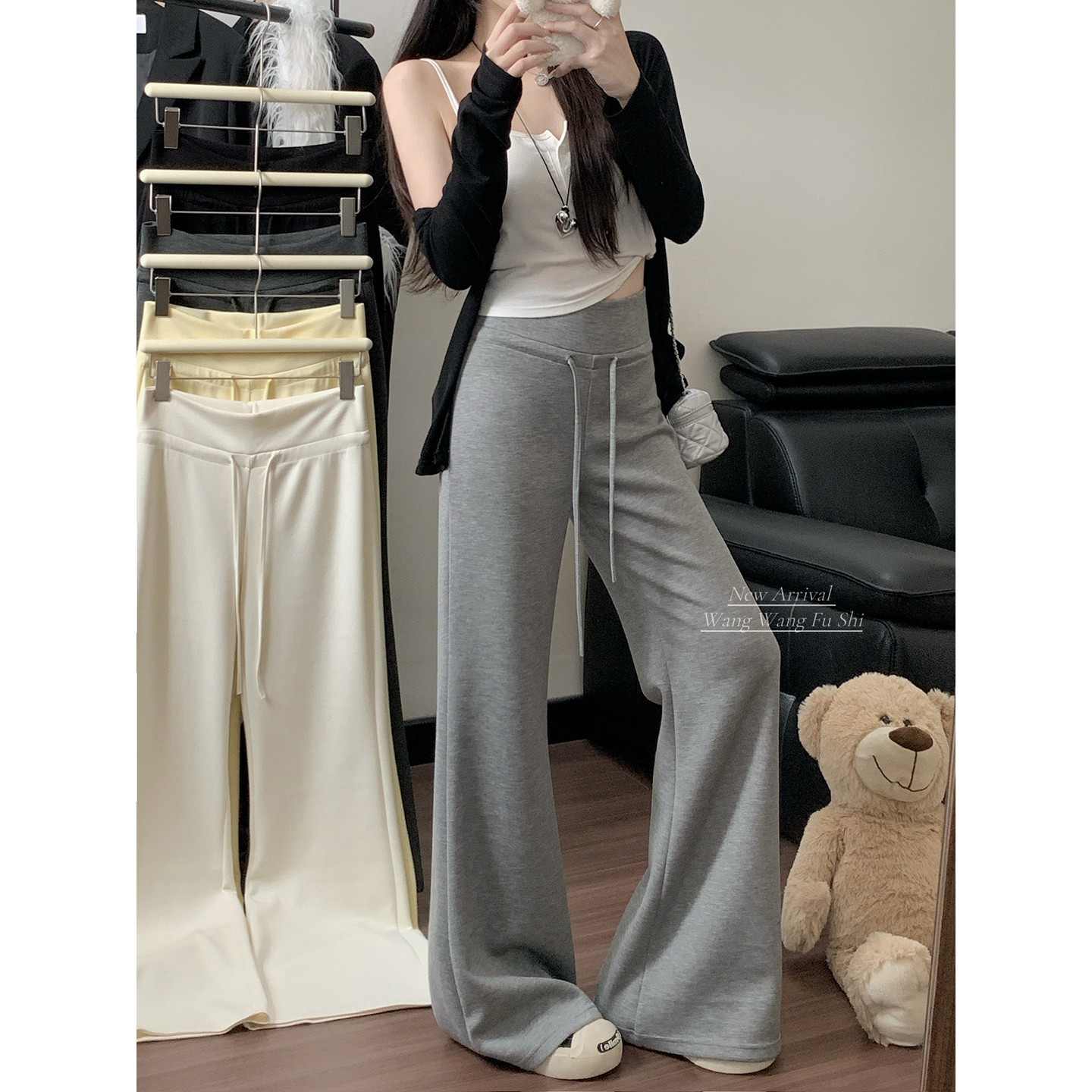 실사 2026 새로운 와이드 레깅스 바지 루즈핏 캐주얼 정장 바지