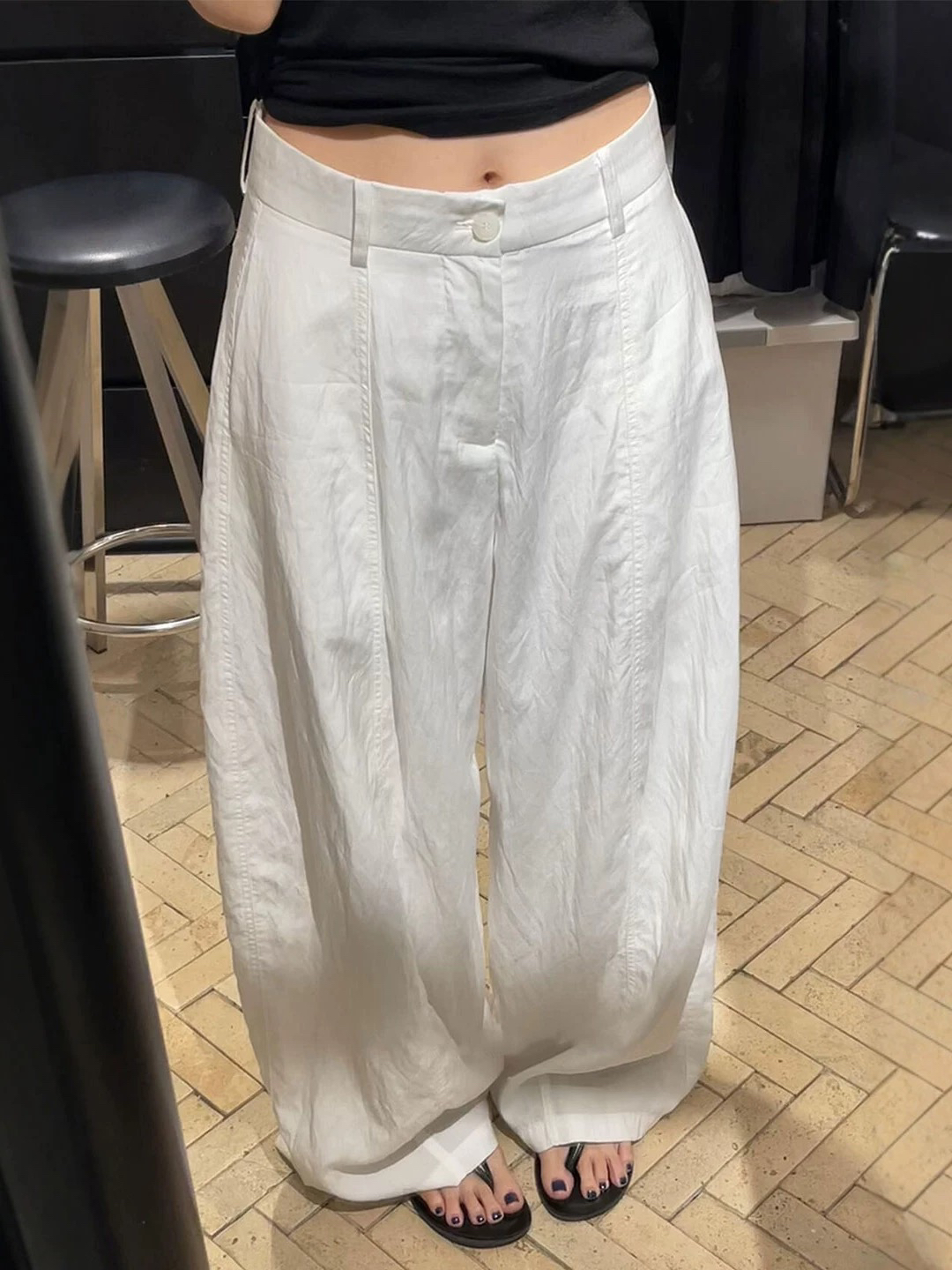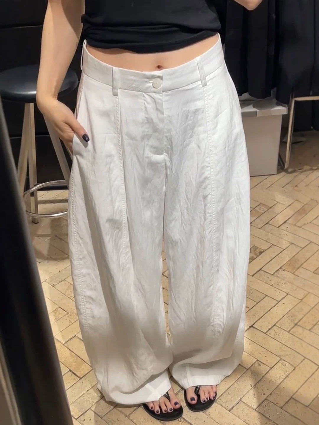 유럽 상품 2026 새로운 패션 다용도 슬림해 보이는 와이드 레그 팬츠 루즈핏 bf 느긋한 바람 화이트 방귀 커튼 캐주얼 바지 여성 봄