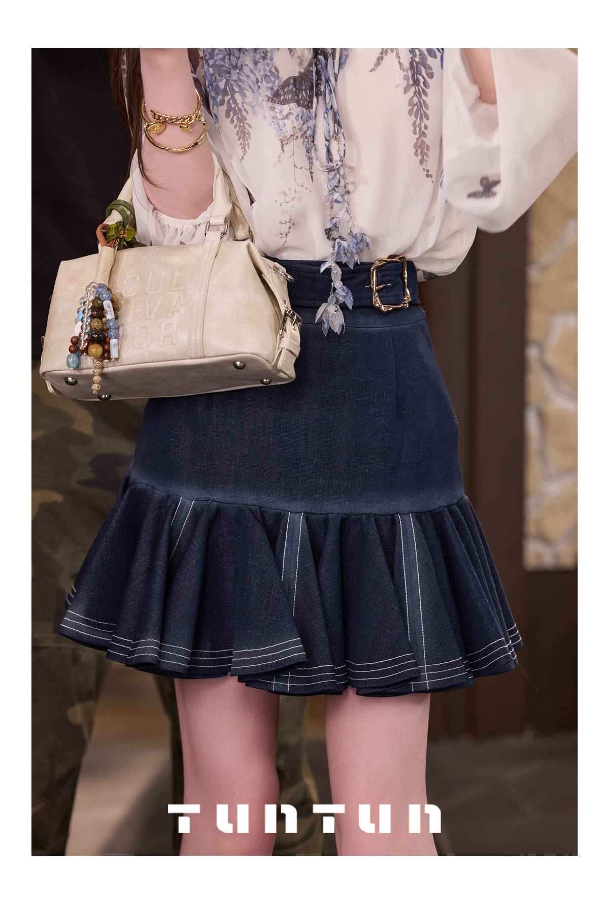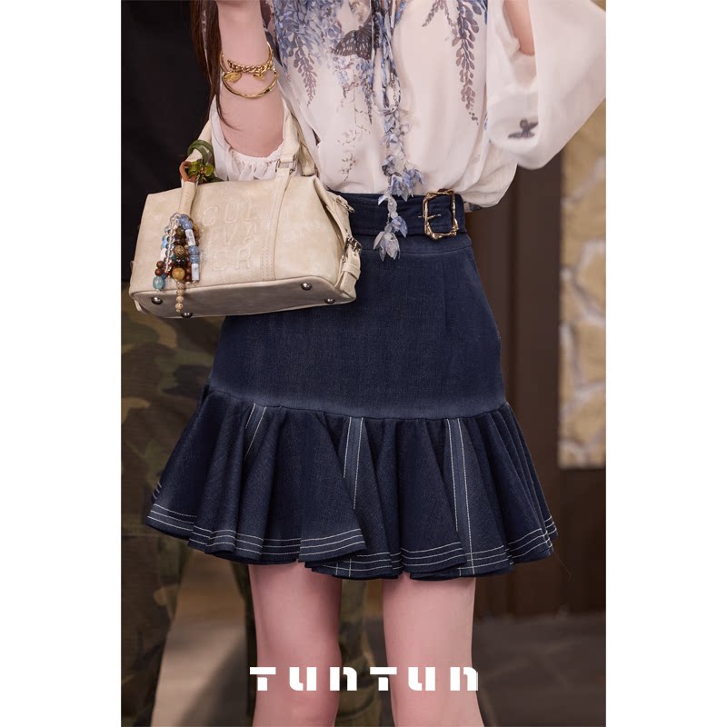 삼키기 tunt 봄 여름 游园 작은 말 절묘한 레트로 하이웨이스트 딱딱한 한 마디 스카프 행침 가을 벨트 미니 스커트