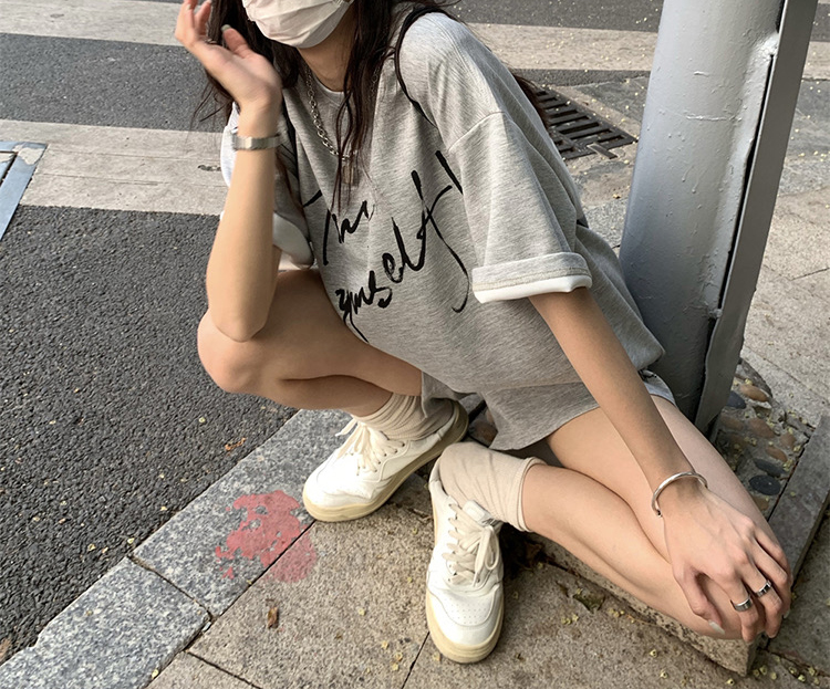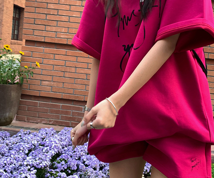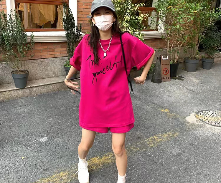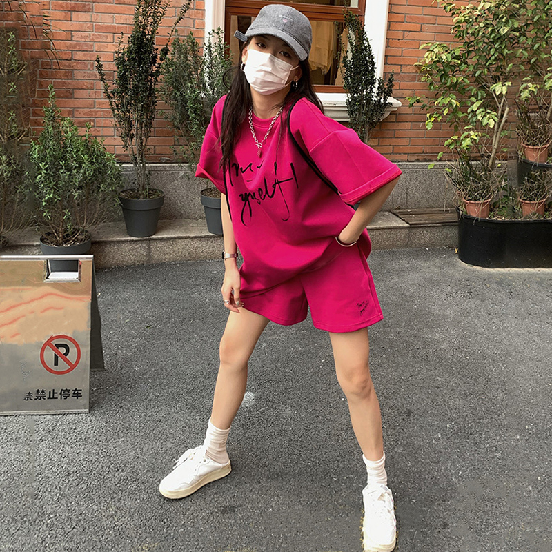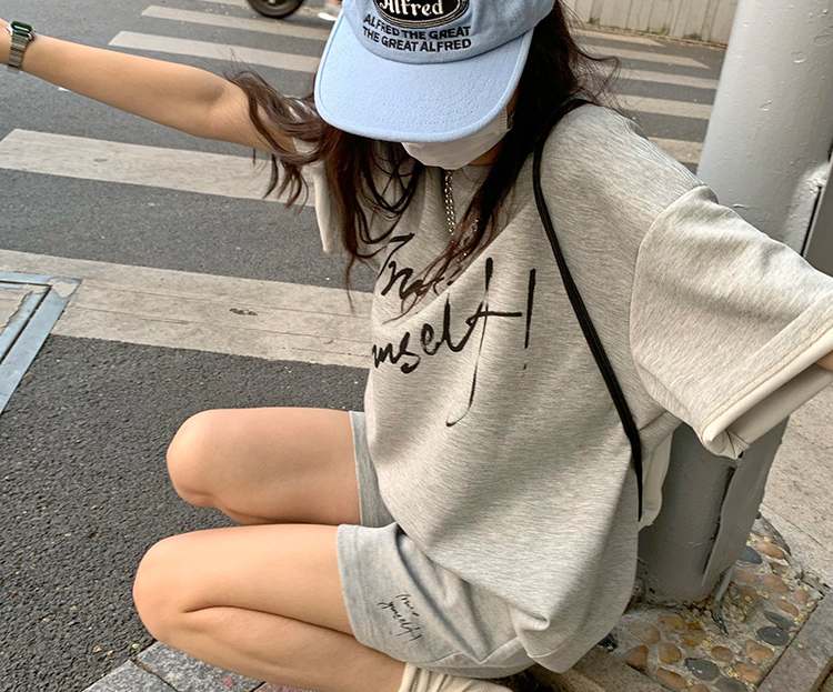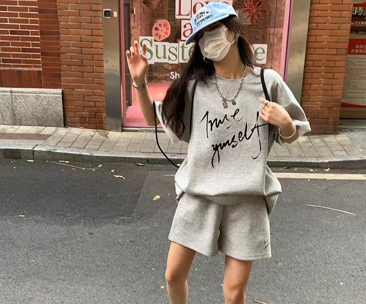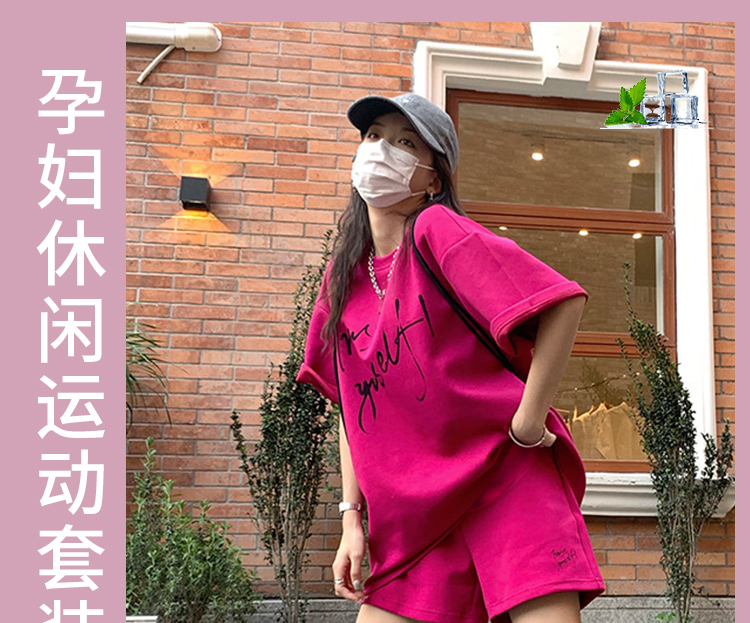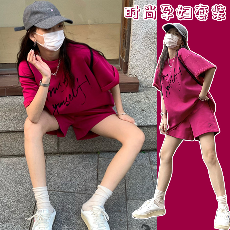 주간 고양이 품질 임산부 세트 여름 새로운 한국 스타일 패치워크 색상 루즈핏 패션 임산부 투피스 세트 맨위 반바지