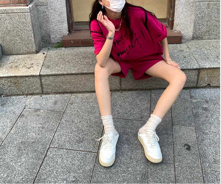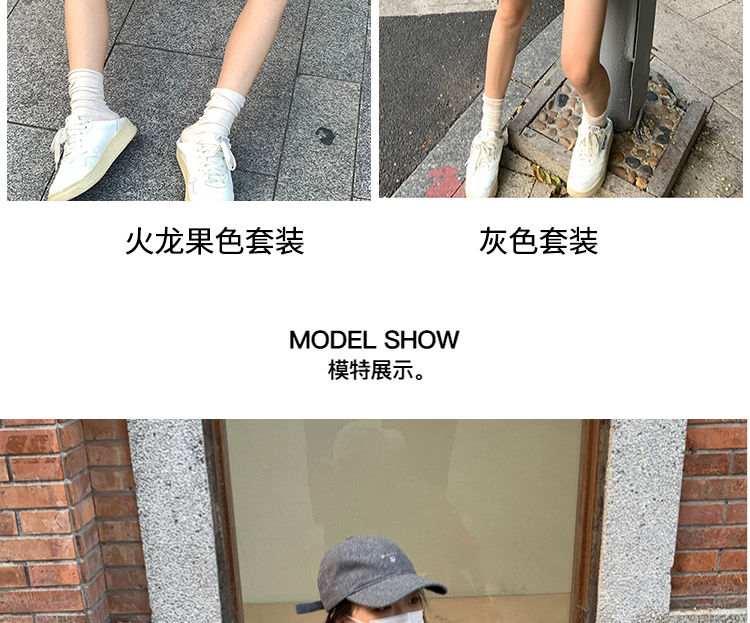 지금 임산부 세트 새로운 패치워크 디자인 루즈핏 맨위 프랑스식 달콤한 다용도 쇼트 스타일 주름 반팔 미니 스커트 세트