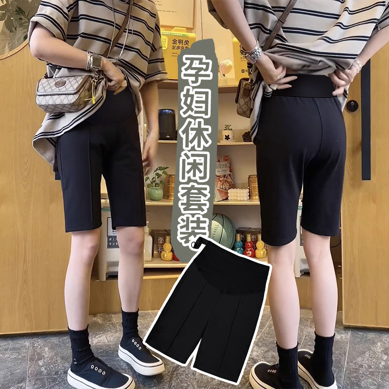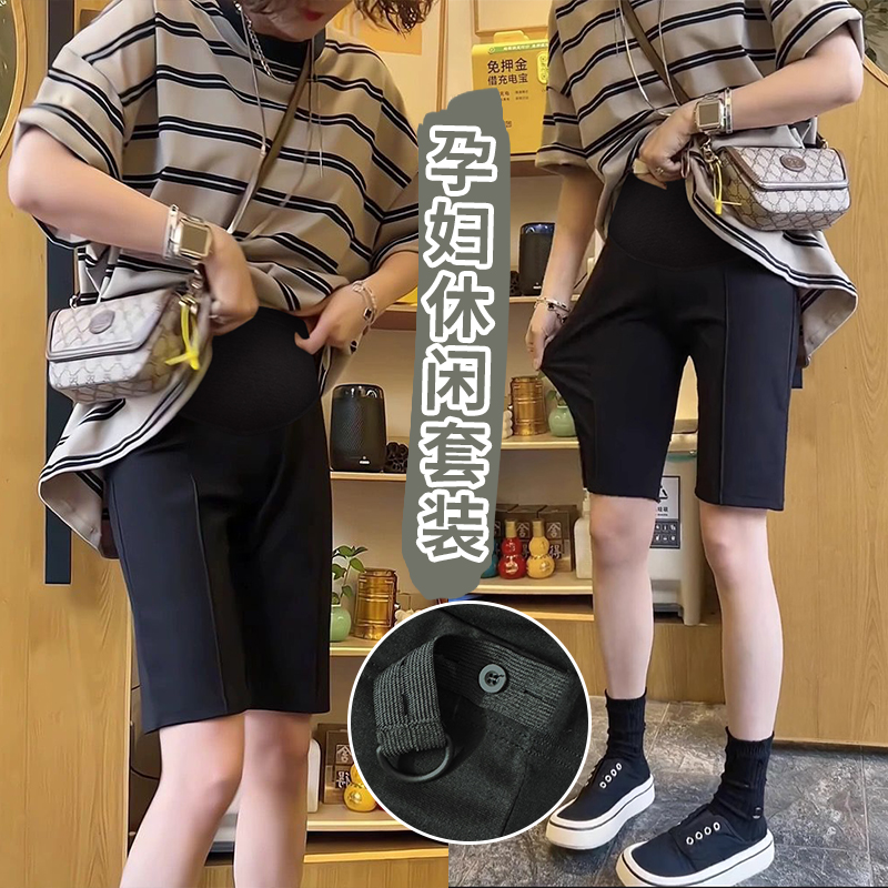 실사 임산부 세트 여름 새로운 한국 스타일 루즈핏 캐주얼 패션 임산부 투피스 세트 맨위 반바지