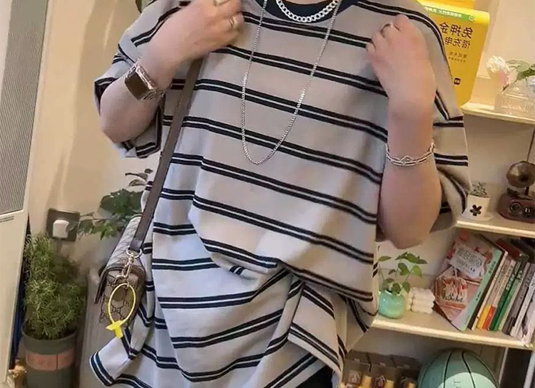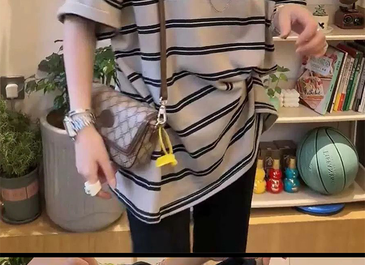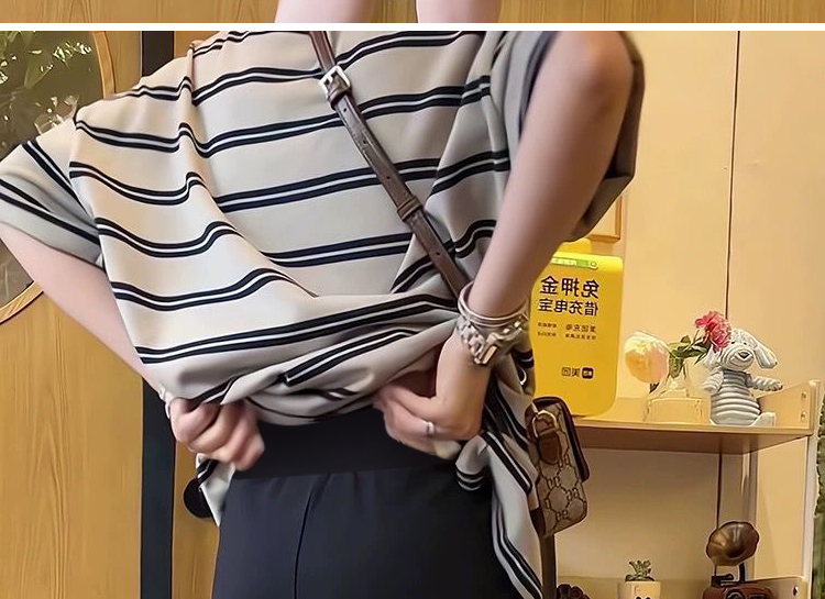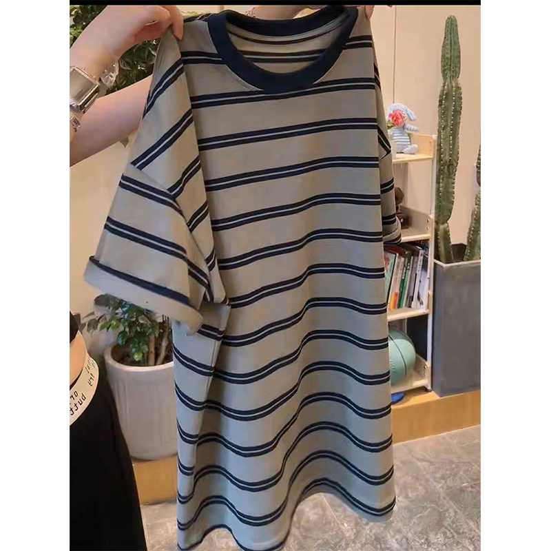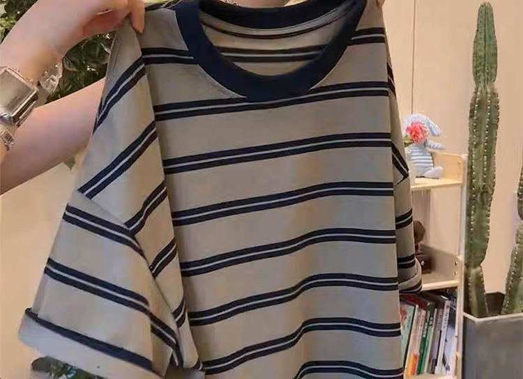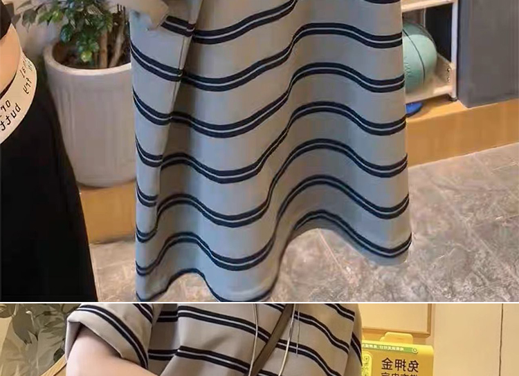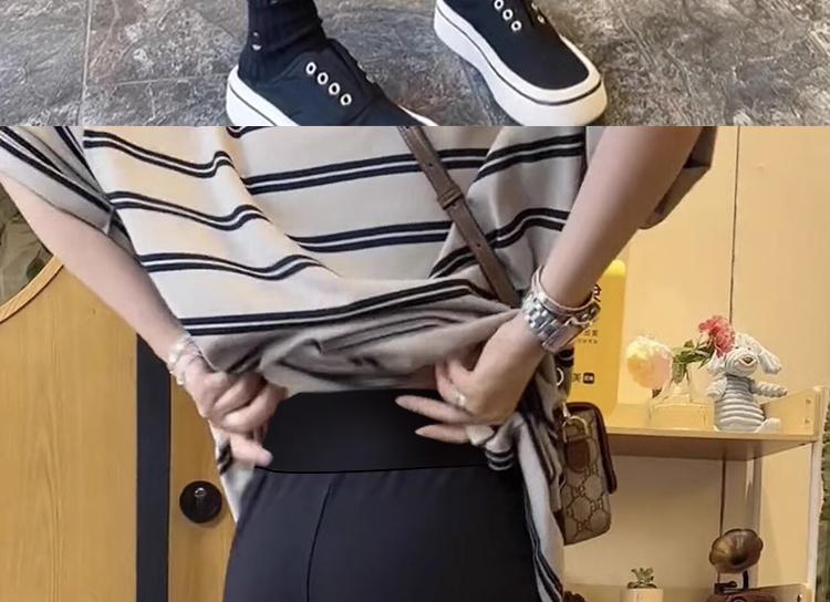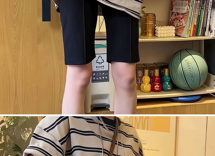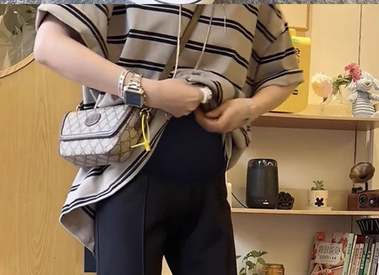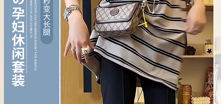 주간 고양이 품질 임산부 스트라이프 배색 라운드 넥 여름 루즈핏 다용도 맨위 5 점 복부 지지 바지 세트