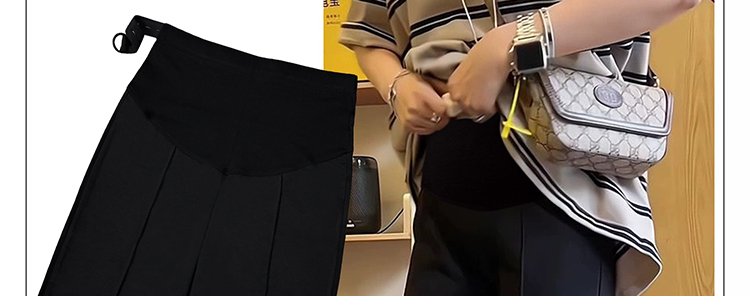 임산부 아세트산 새틴 똑똑한 주름 단색 다용도 반신 스커트 하이웨이스트 한 마디 복부 지지 중간 길이 스커트