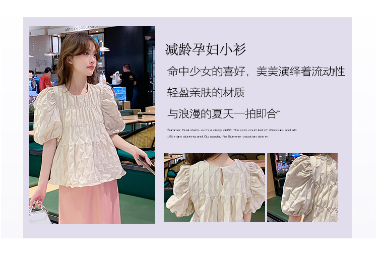 주간 고양이 품질 실사 여름 다용도 임산부 프랑스식 디자인 센스 주름 거품 소매 맨위 9 포인트 하렘 바지
