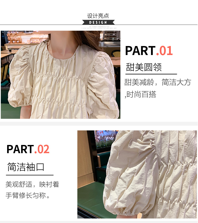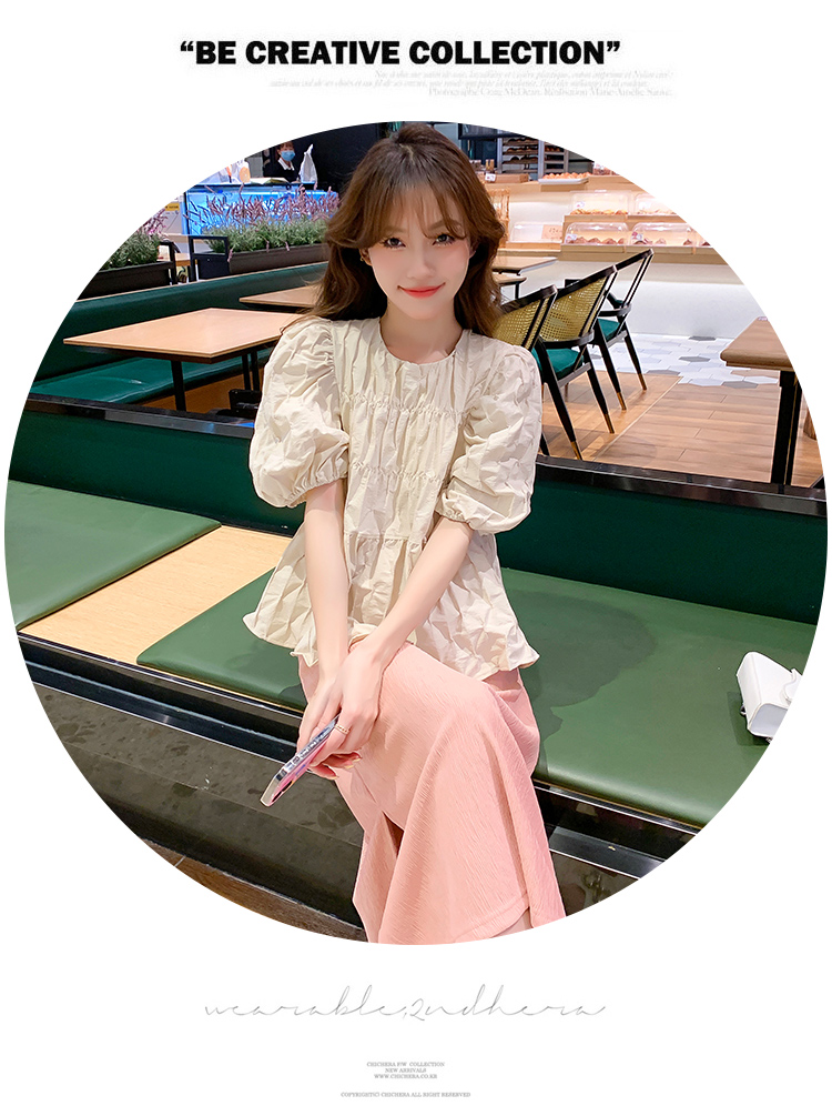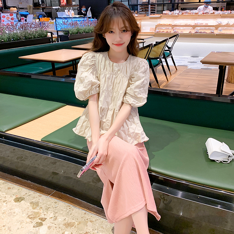 주간 고양이 품질 실사 여름 임산부 프랑스식 디자인 센스 주름 거품 소매 맨위 베이지 색 넓은 다리가 짧다. 바지