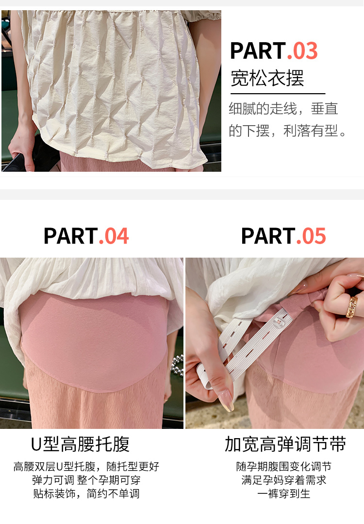 주간 고양이 품질 임산부 바지 새로운 여름 얇은 세 하우스 주름 도루 가을 센스 하이웨이스트 스트레이트 넓은 다리 바닥 청소 복부 지지 바지