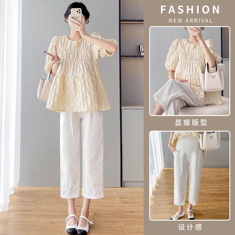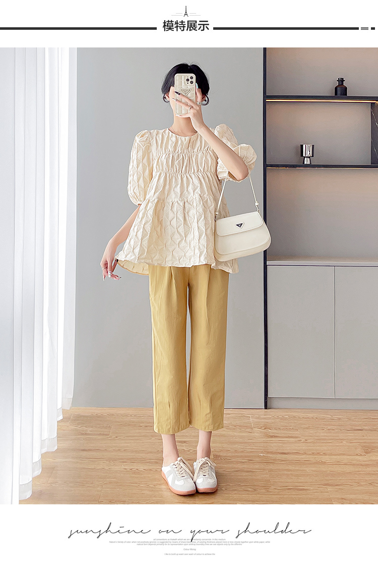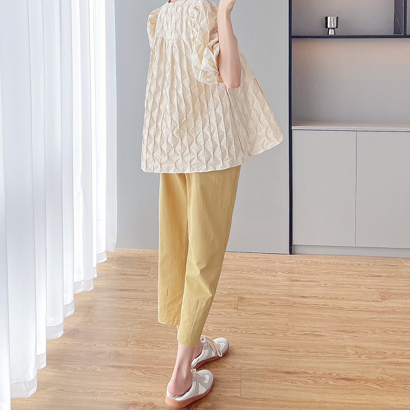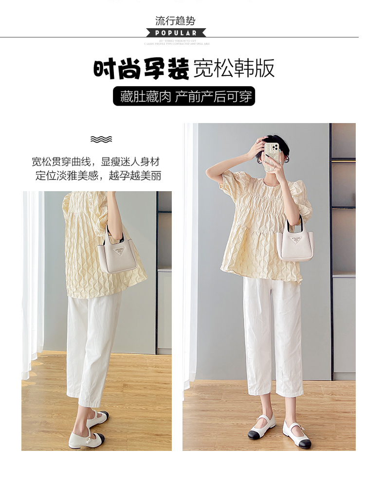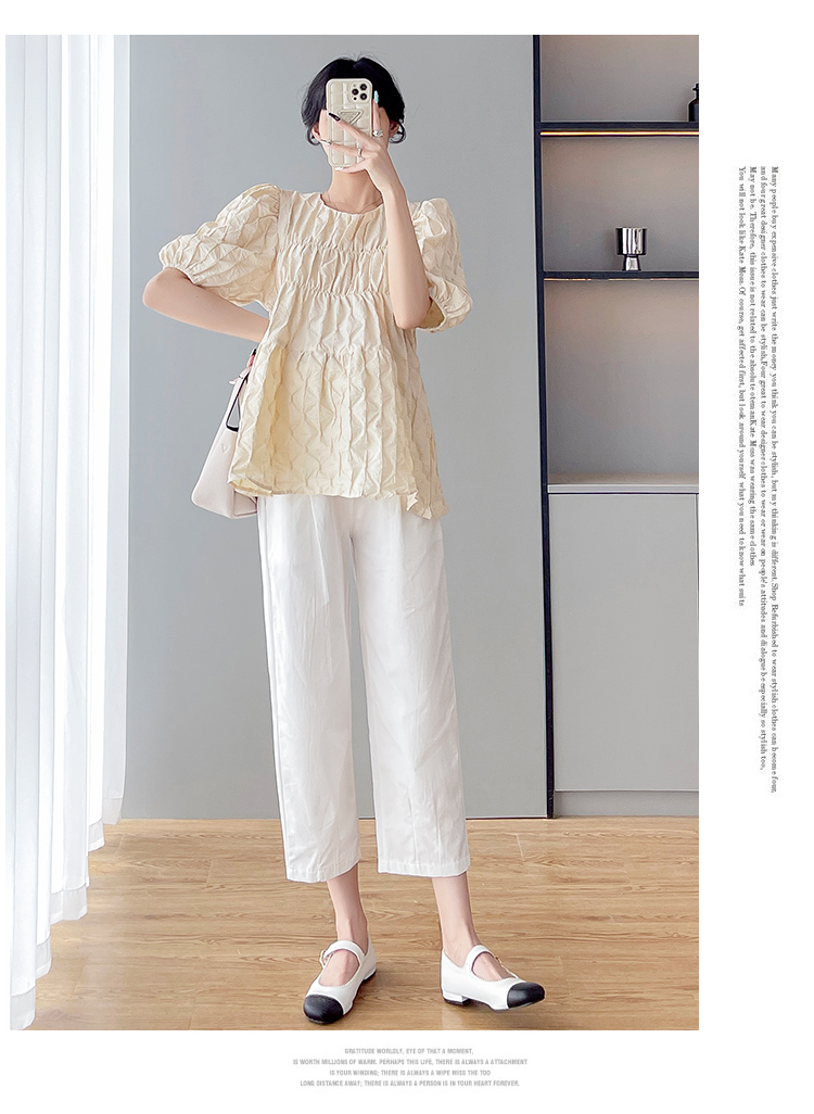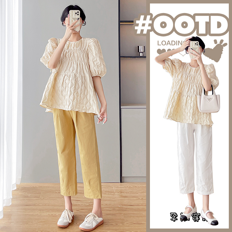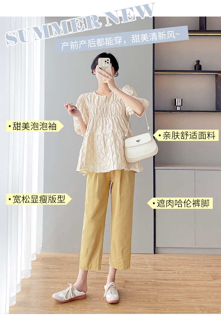 주간 고양이 품질 실사 여름 다용도 임산부 프랑스식 디자인 센스 주름 거품 소매 맨위 9 포인트 하렘 바지