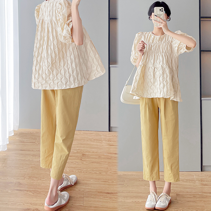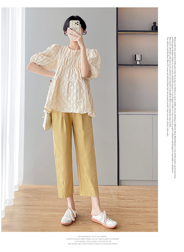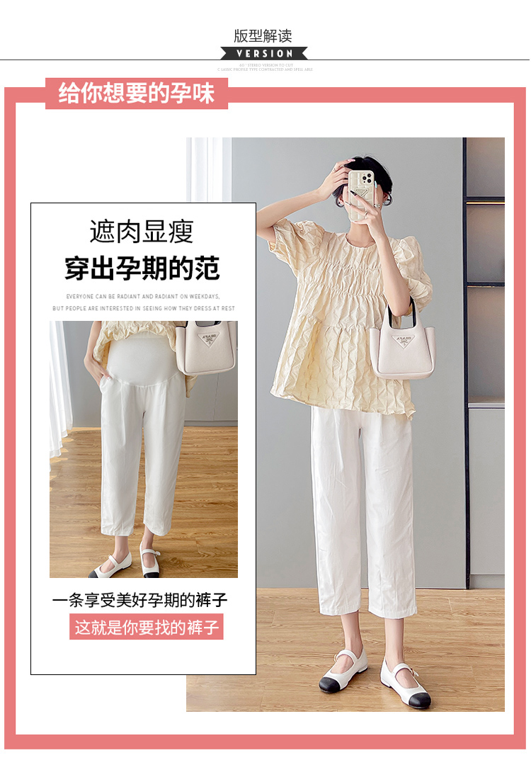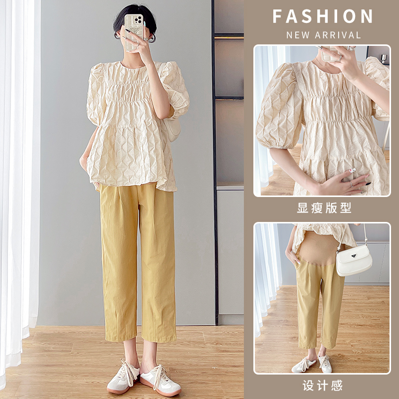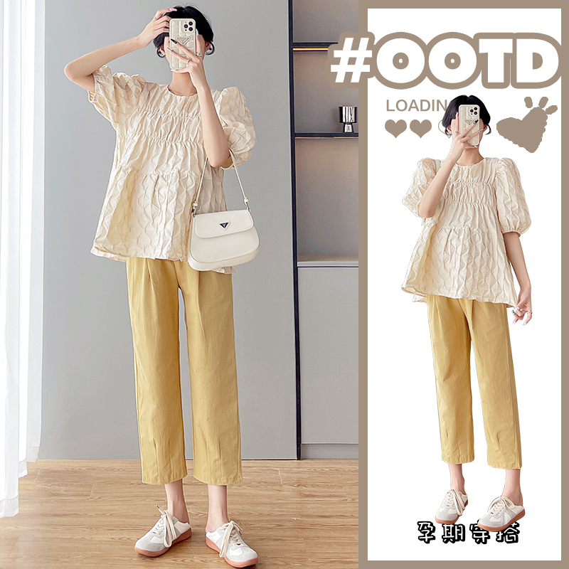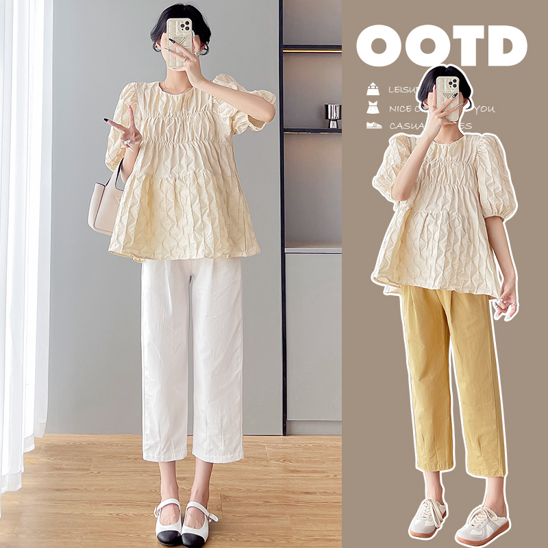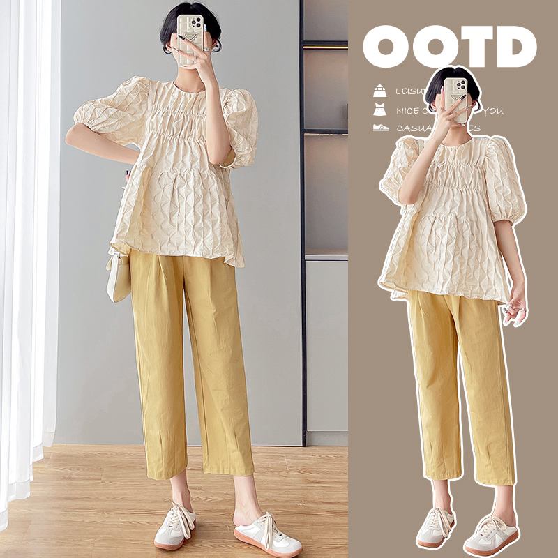 주간 고양이 품질 실사 여름 다용도 임산부 프랑스식 디자인 센스 주름 거품 소매 맨위 9 포인트 하렘 바지