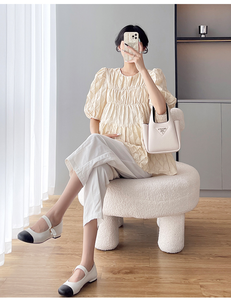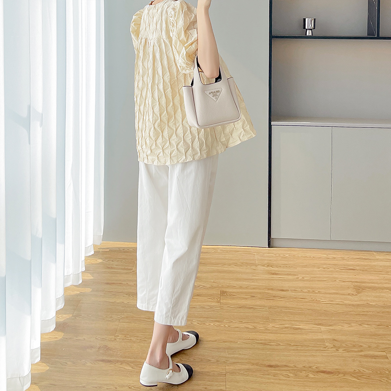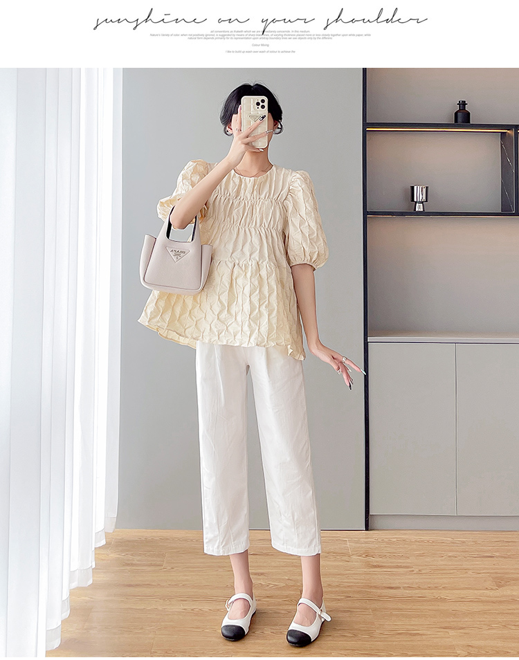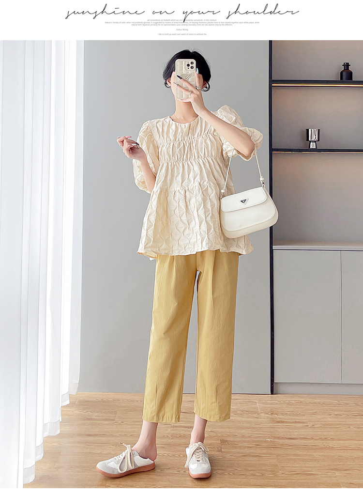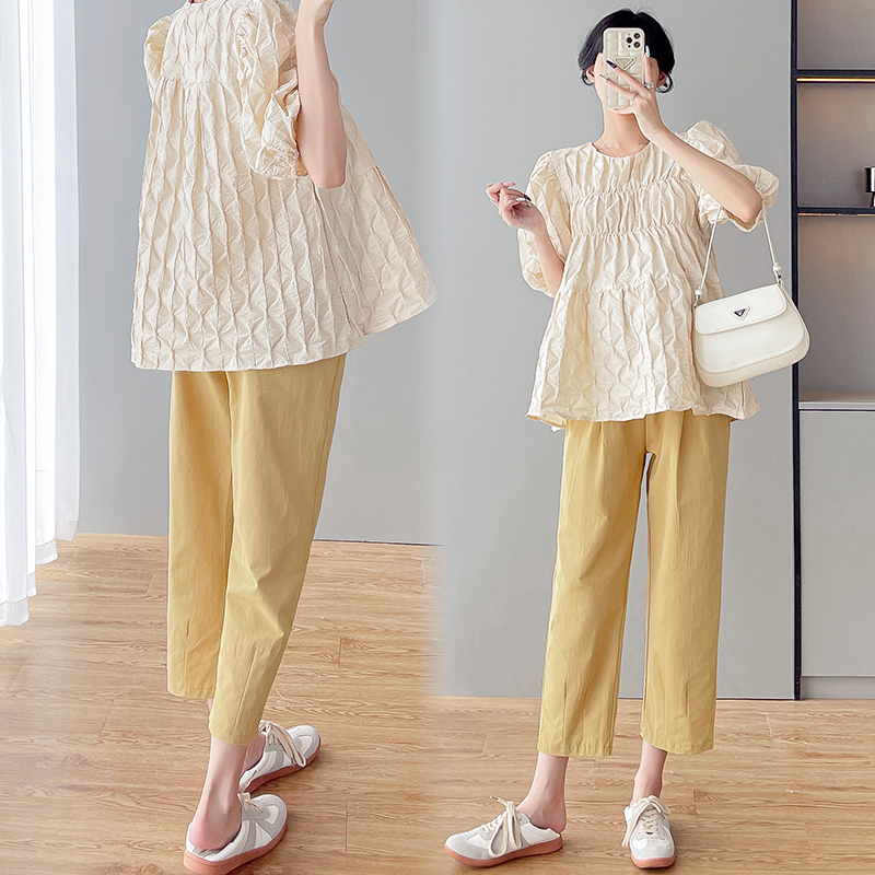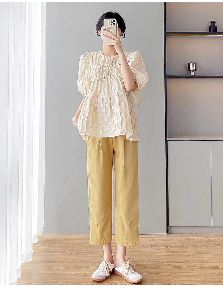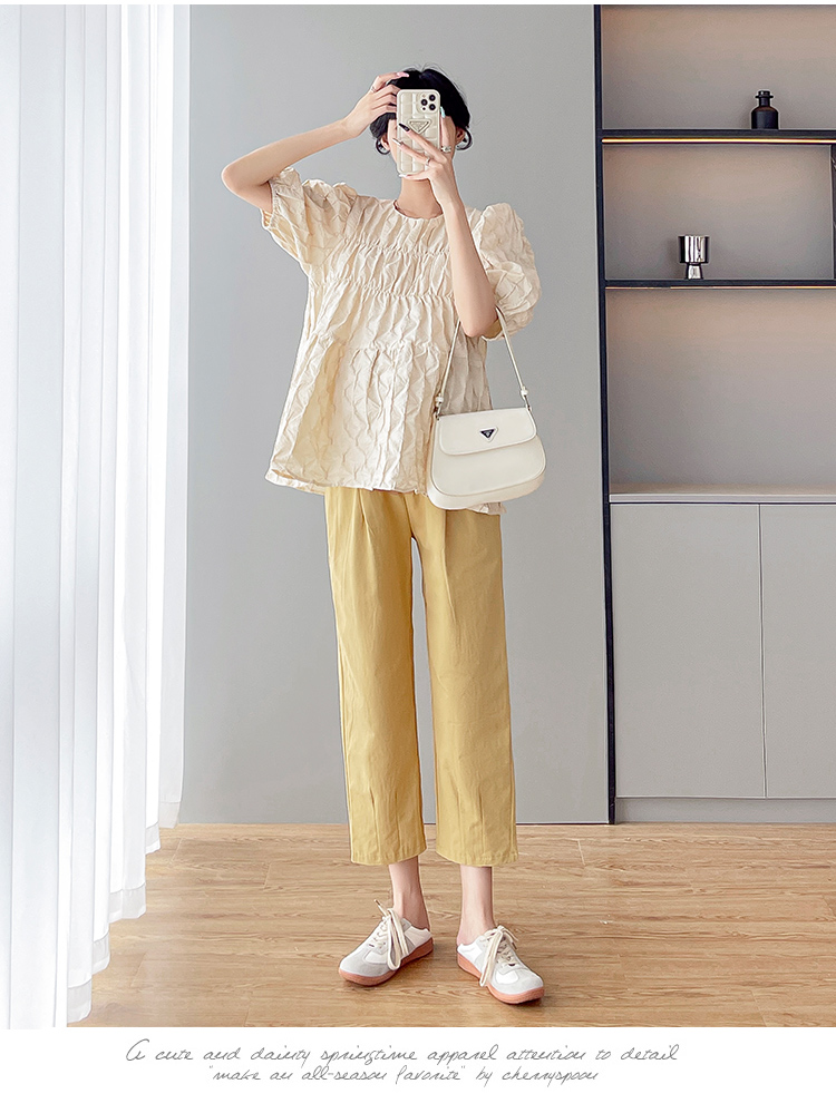 주간 고양이 품질 실사 여름 다용도 임산부 프랑스식 디자인 센스 주름 거품 소매 맨위 9 포인트 하렘 바지
