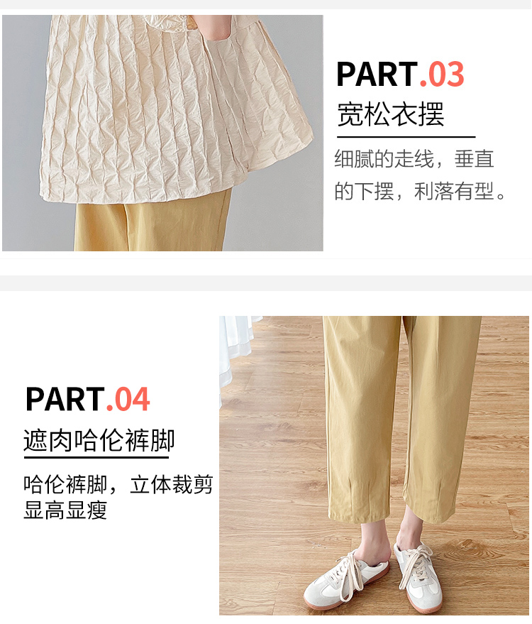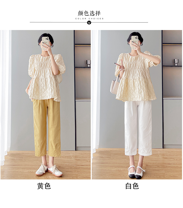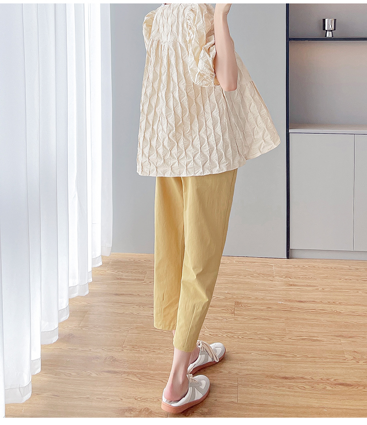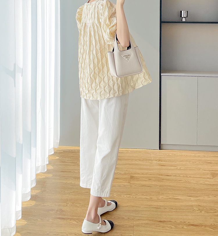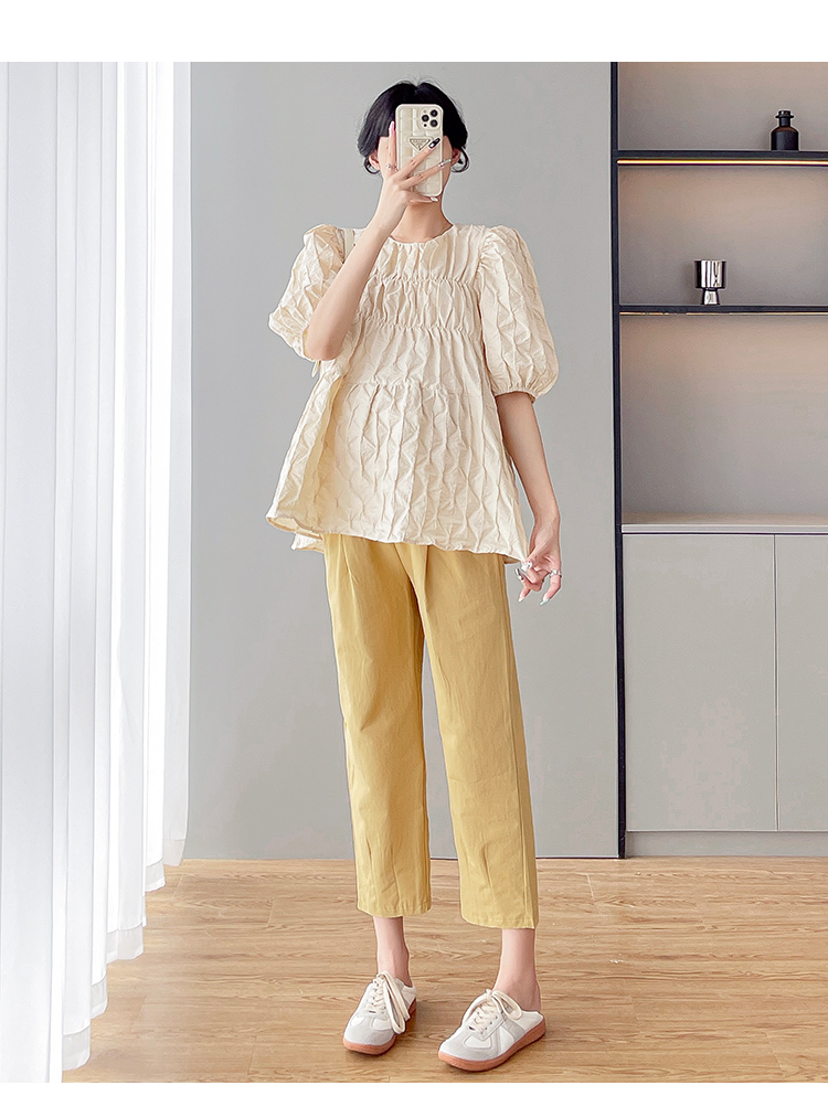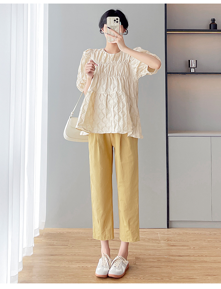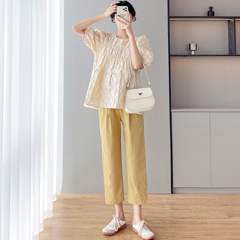 주간 고양이 품질 실사 여름 다용도 임산부 프랑스식 디자인 센스 주름 거품 소매 맨위 9 포인트 하렘 바지