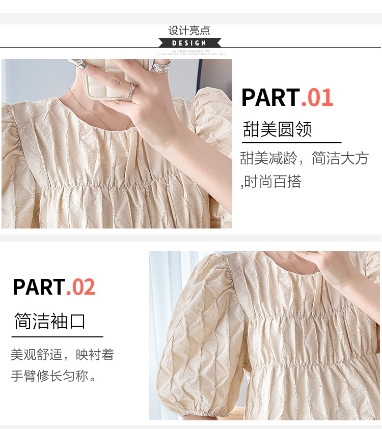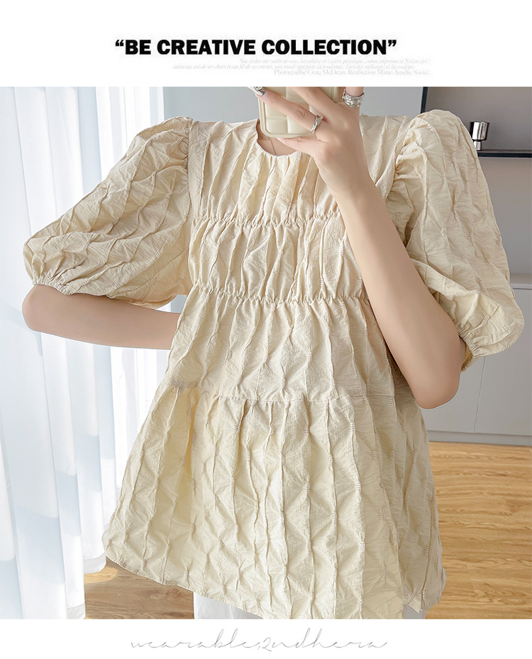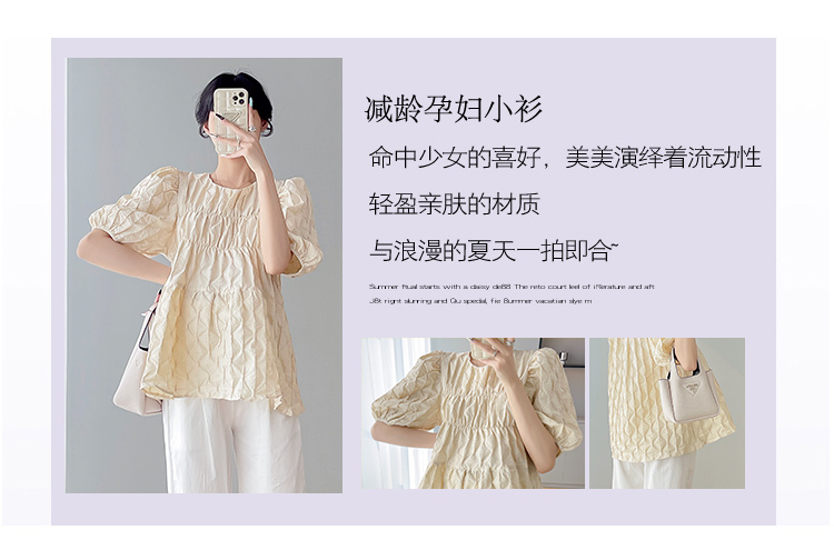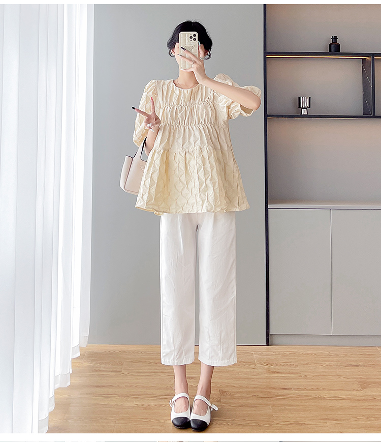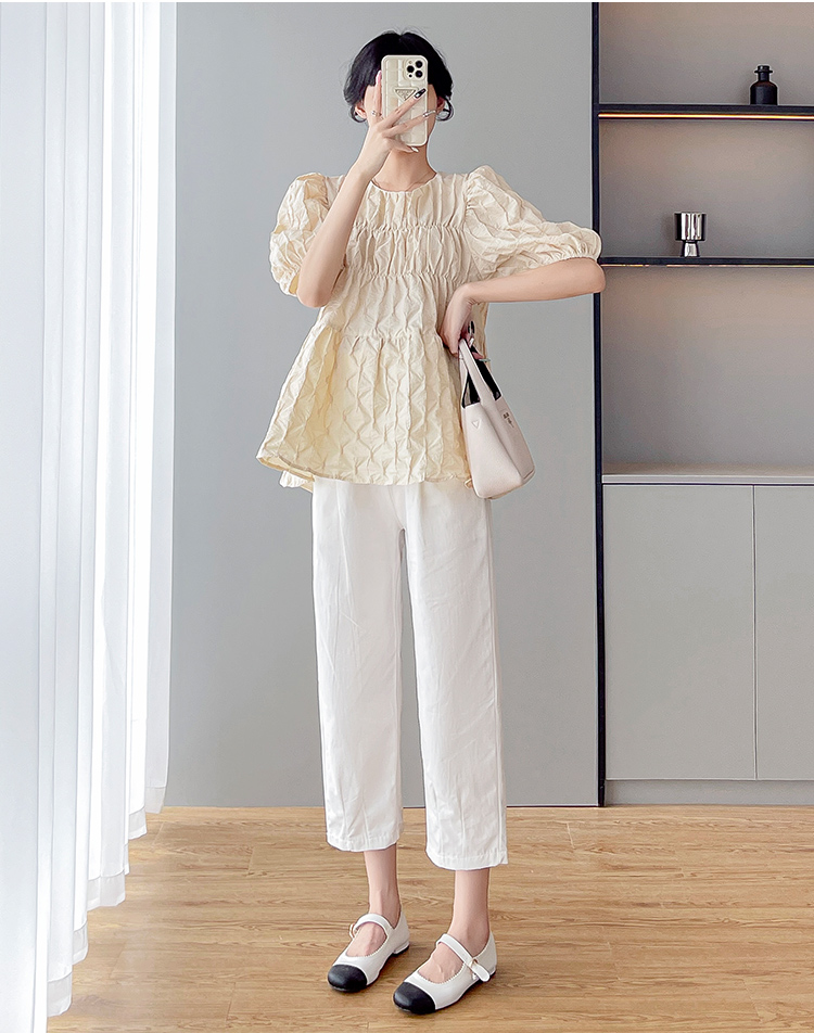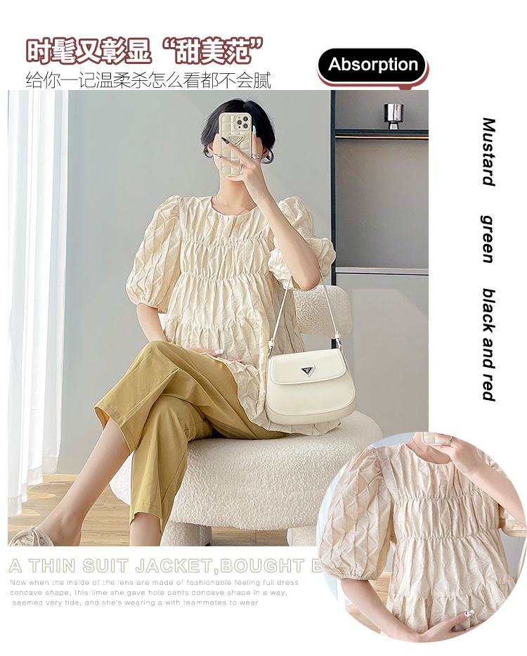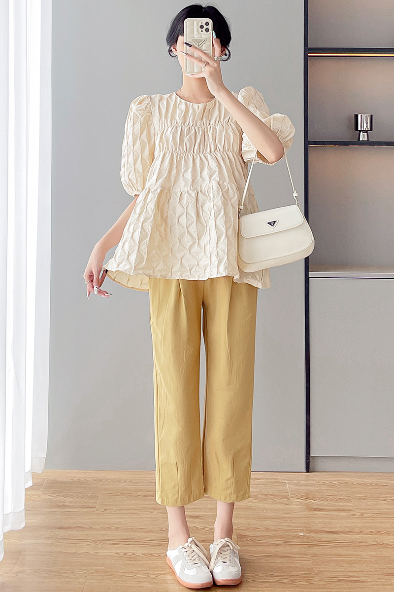 주간 고양이 품질 실사 여름 임산부 프랑스식 디자인 센스 주름 거품 소매 맨위 베이지 색 넓은 다리가 짧다. 바지