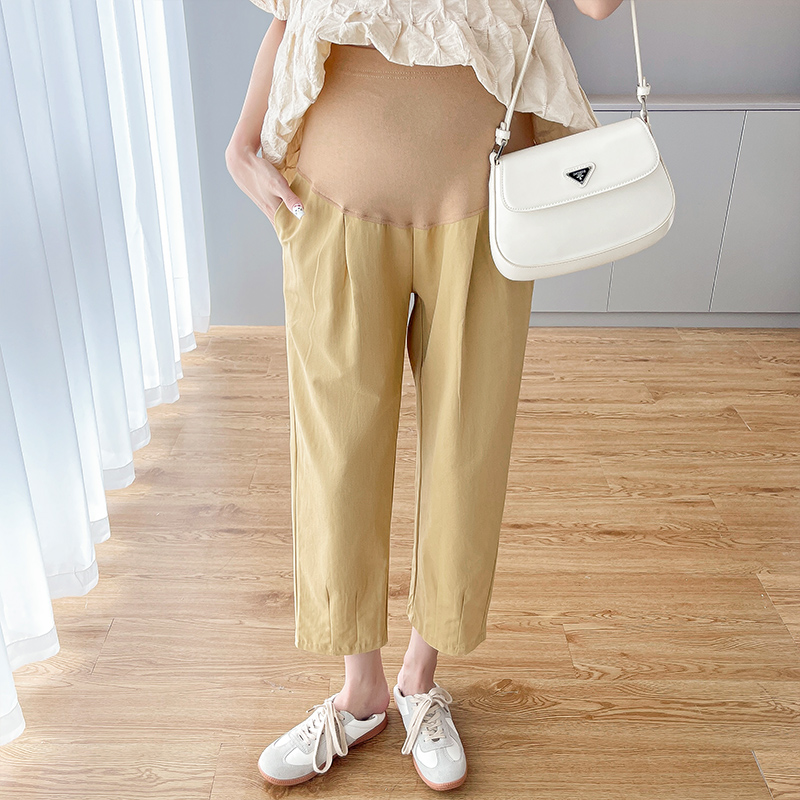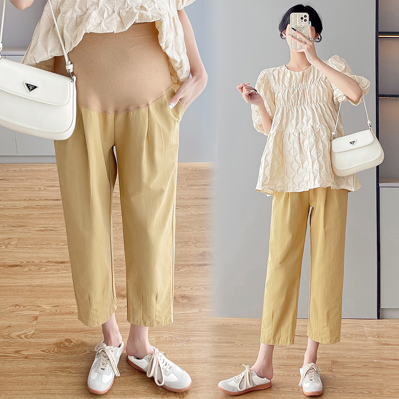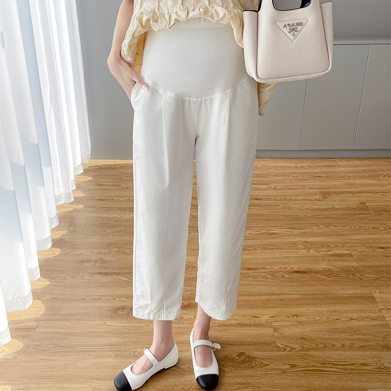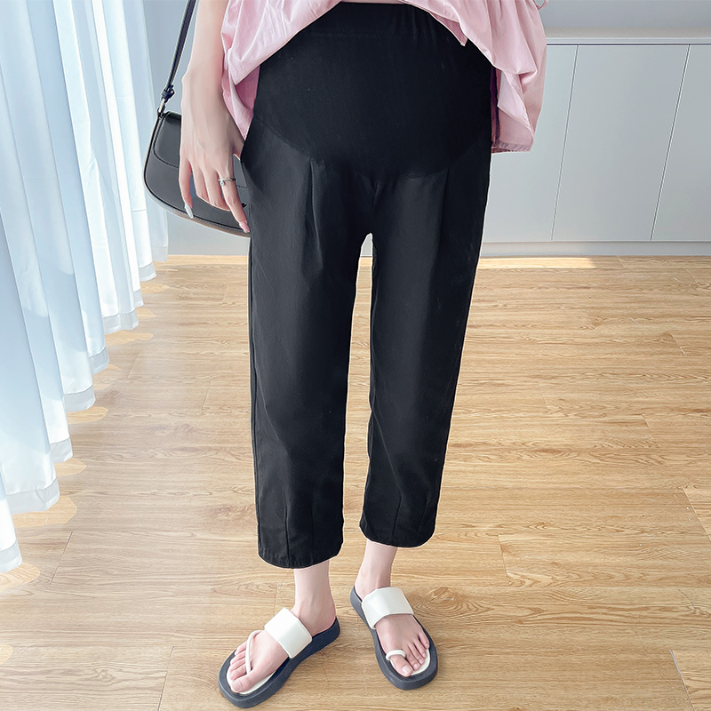 주간 고양이 품질 임산부 바지 새로운 여름 얇은 세 하우스 주름 도루 가을 센스 하이웨이스트 스트레이트 넓은 다리 바닥 청소 복부 지지 바지