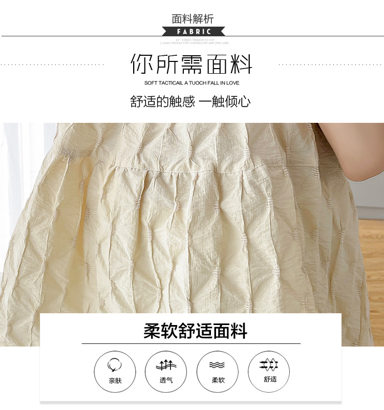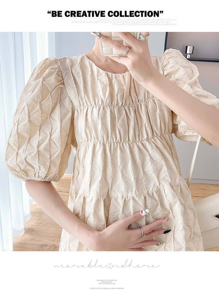 주간 고양이 품질 실사 여름 다용도 임산부 프랑스식 디자인 센스 주름 거품 소매 맨위 분말 트임 롱 스커트