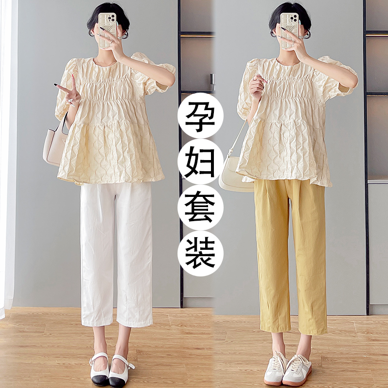 주간 고양이 품질 임산부 세트 여름 새로운 한국 스타일 루즈핏 캐주얼 패션 임산부 투피스 세트 맨위 반바지