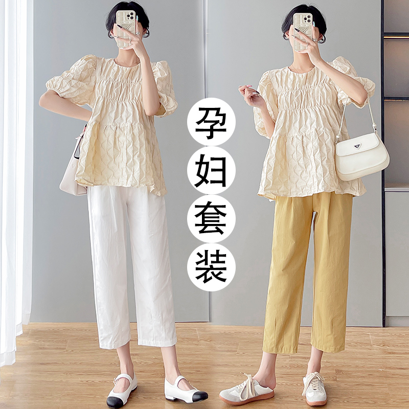 실사 임산부 세트 여름 새로운 한국 스타일 루즈핏 캐주얼 패션 임산부 투피스 세트 맨위 반바지