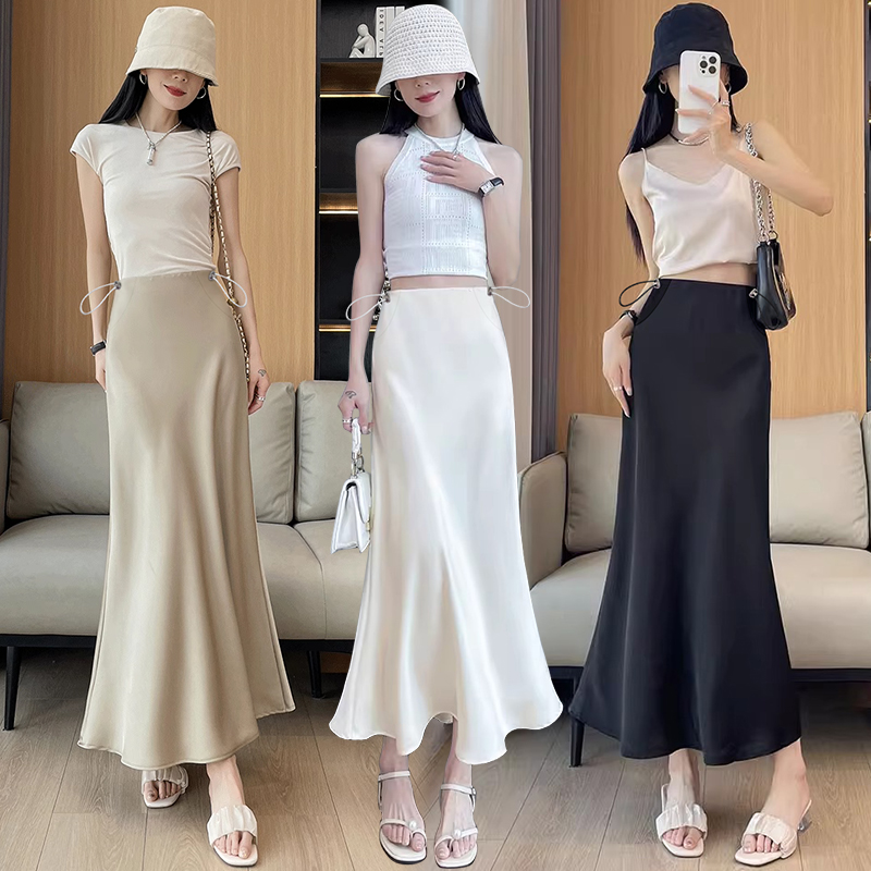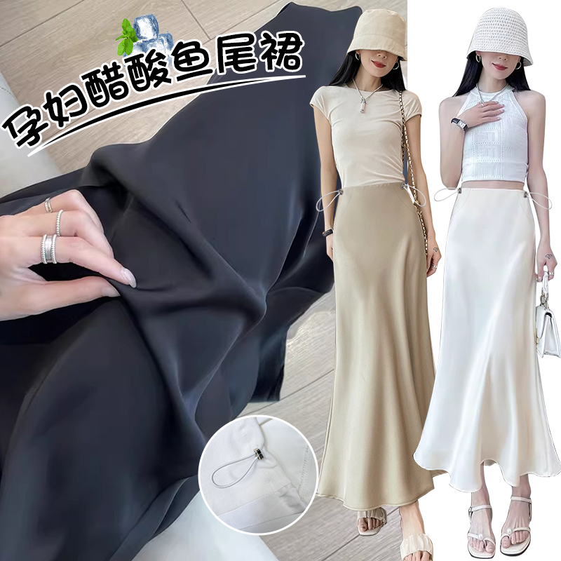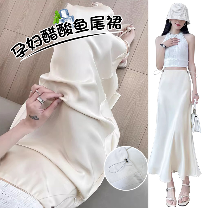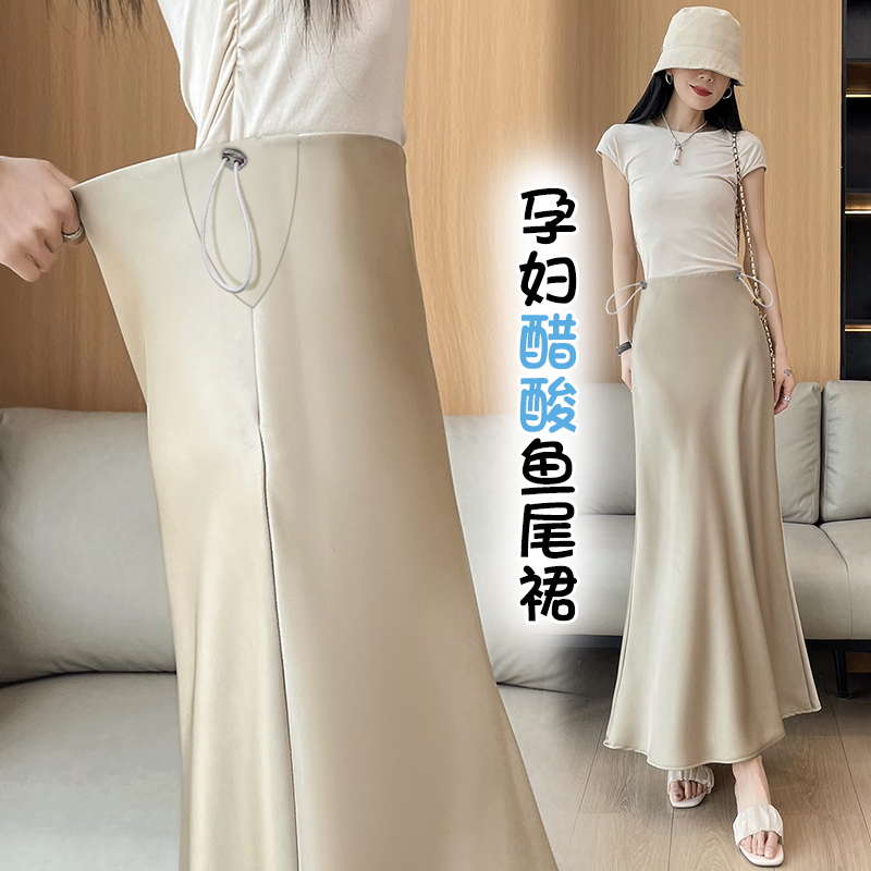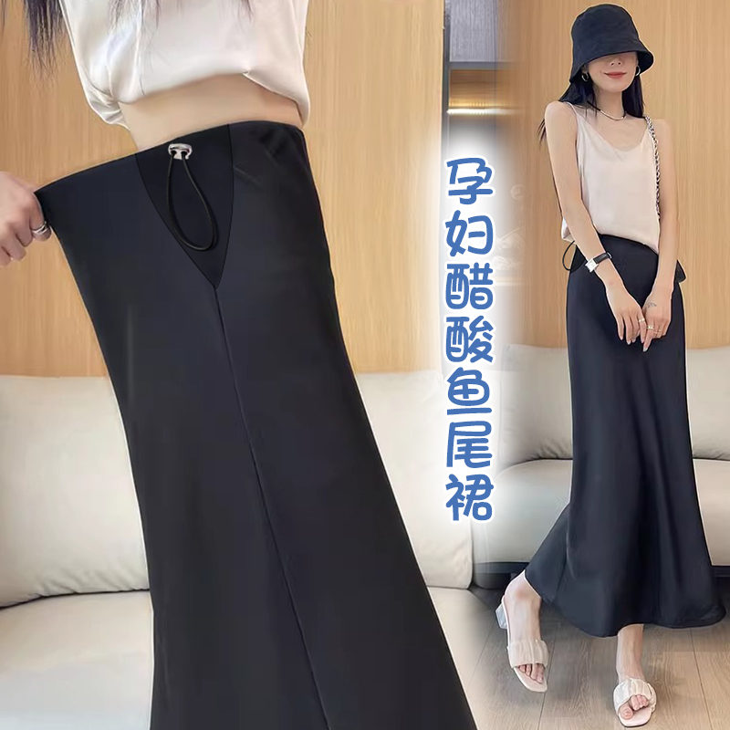 임산부 여름 아세트산 공단 아니요 복부 지지 돼지 코 버클 조정 반신 스커트 봄 실크 미끄러짐 한 마디 타이트 스커트 인어 꼬리 스커트 롱 코트