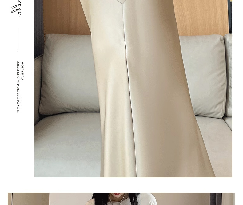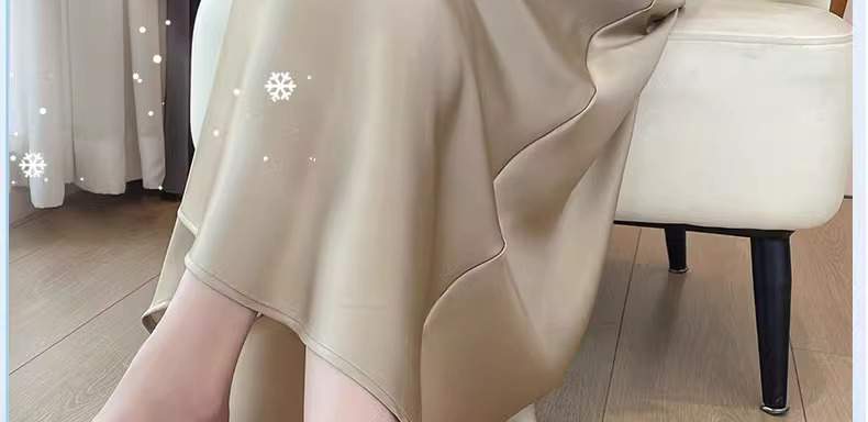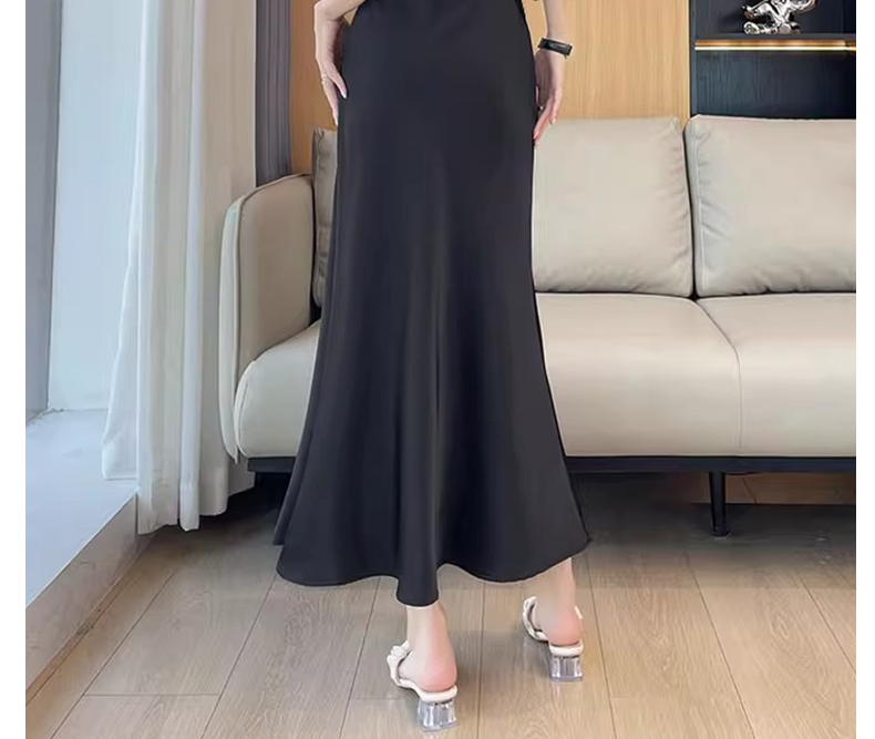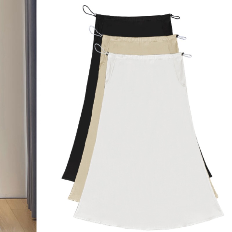 임산부 아세트산 새틴 똑똑한 주름 단색 다용도 반신 스커트 하이웨이스트 한 마디 복부 지지 중간 길이 스커트