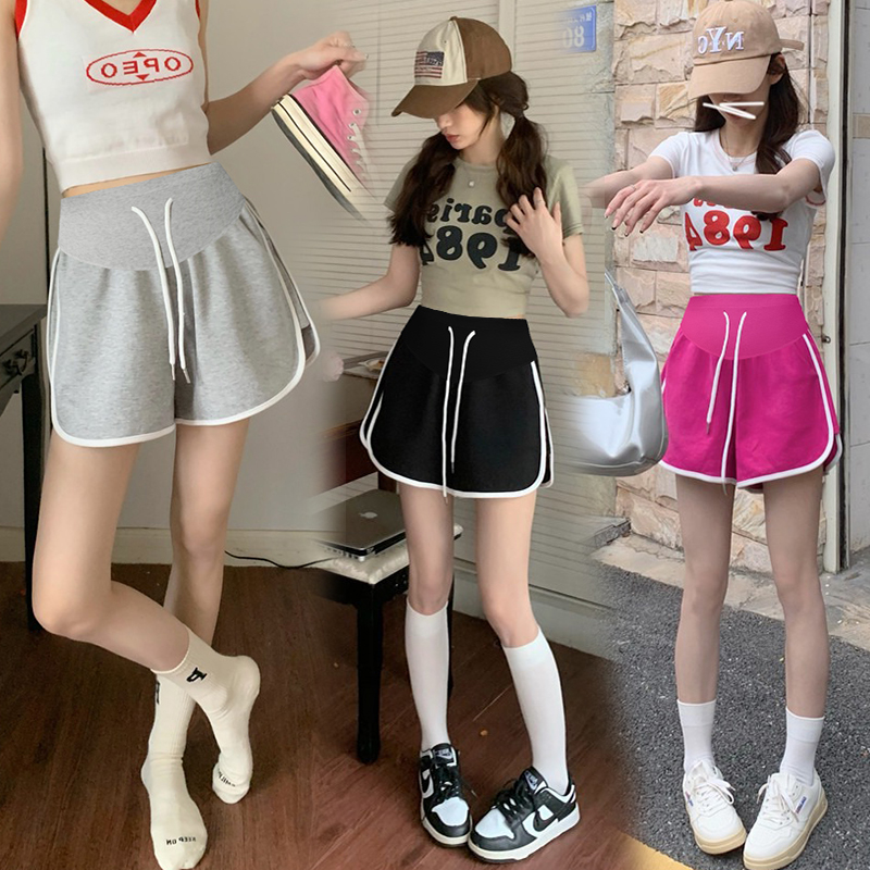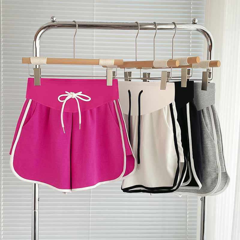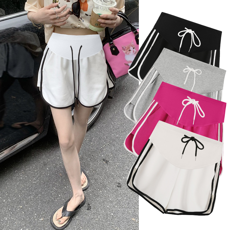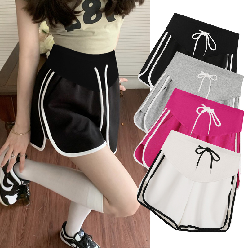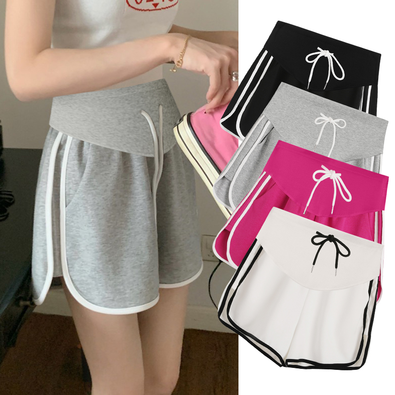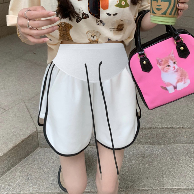 주간 고양이 품질 임산부 핫 바지 여름 펌프 로프 루즈핏 와이드 레그 팬츠 운동 바지 다용도 임산부 5 점 반바지