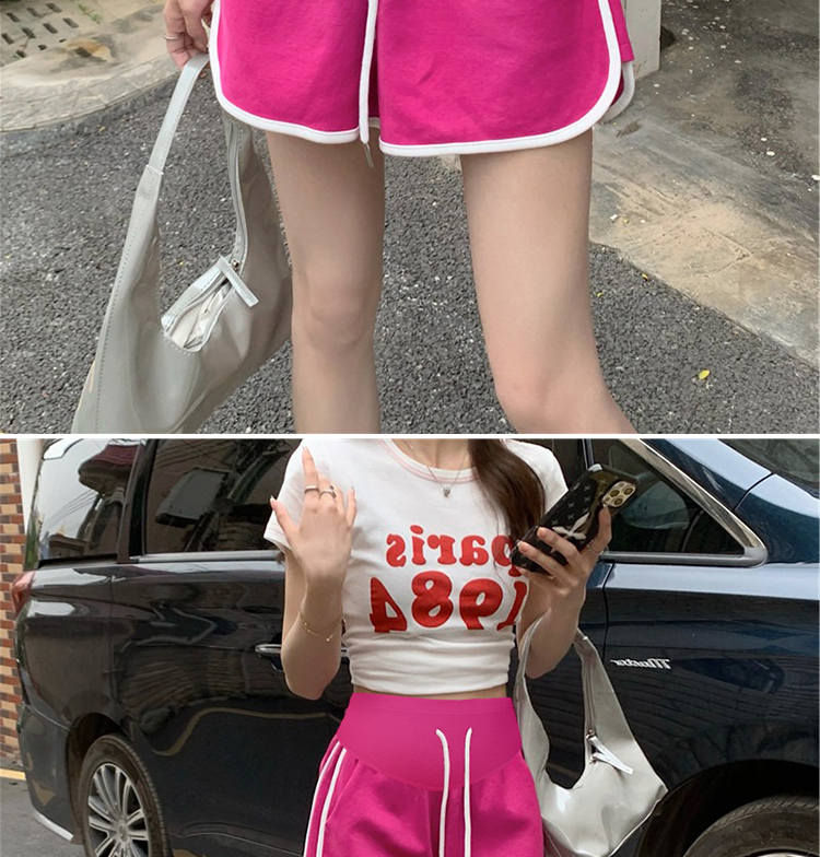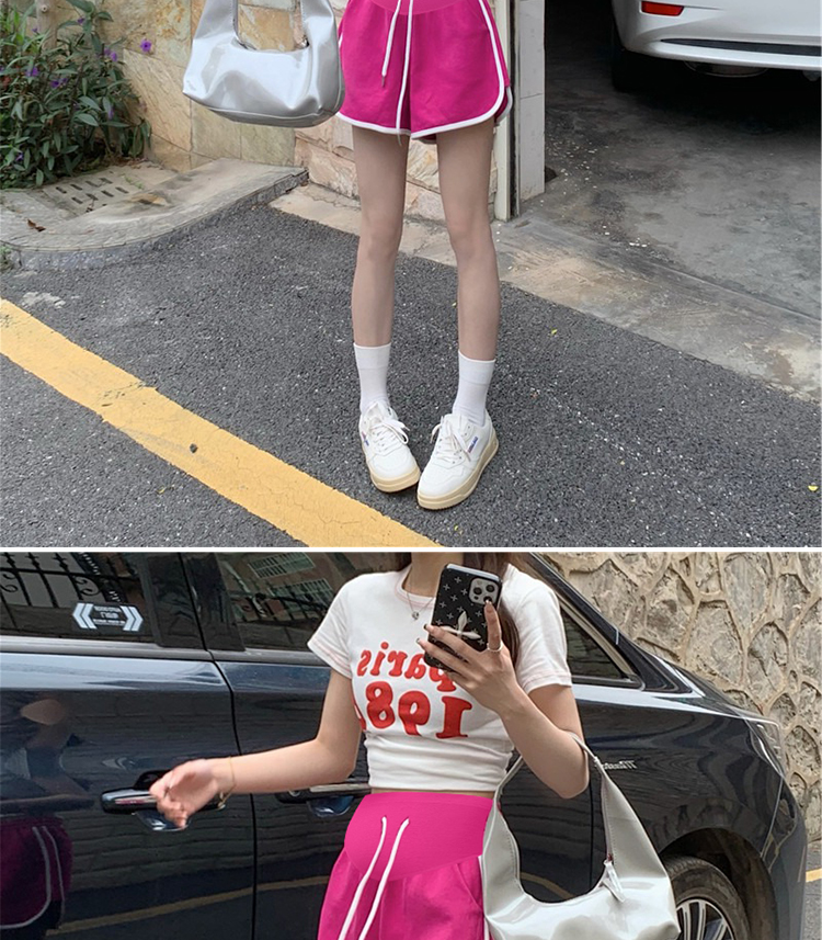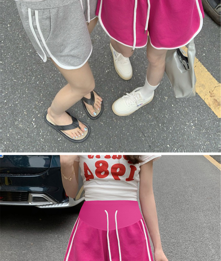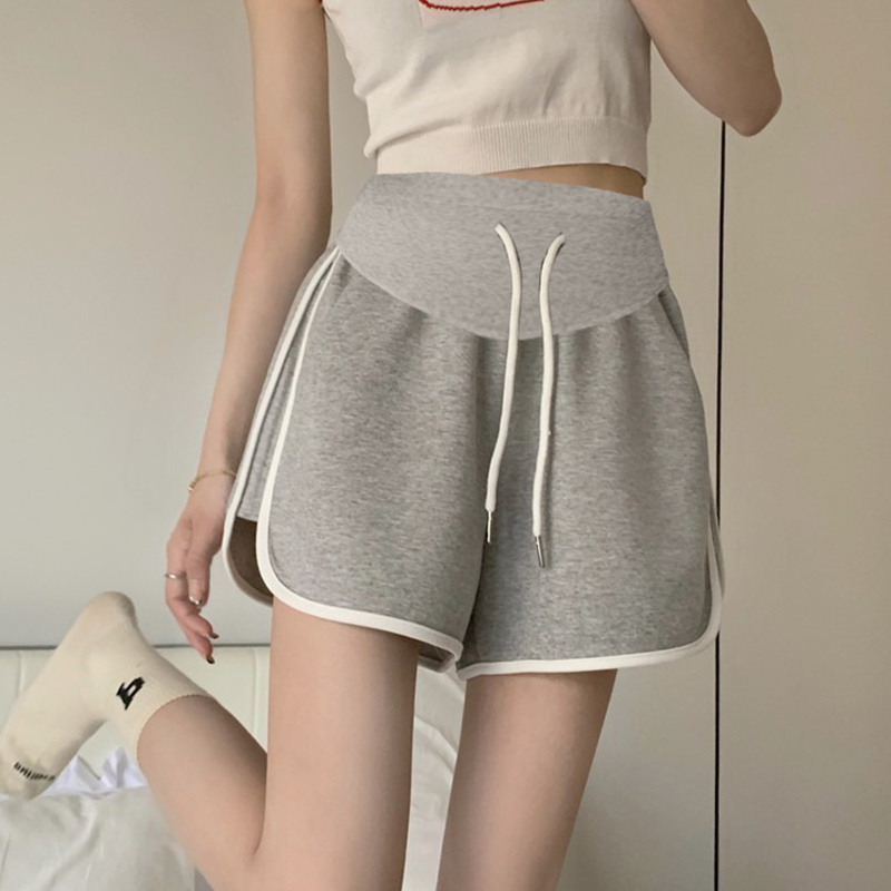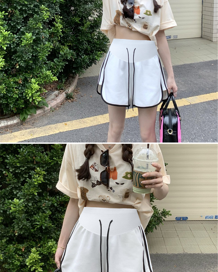 주간 고양이 품질 임산부 핫 바지 여름 펌프 로프 루즈핏 와이드 레그 팬츠 운동 바지 다용도 임산부 5 점 반바지