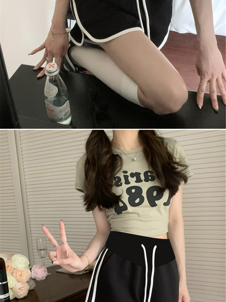 주간 고양이 품질 실사 여름 임산부 프랑스식 디자인 센스 주름 거품 소매 맨위 베이지 색 넓은 다리가 짧다. 바지