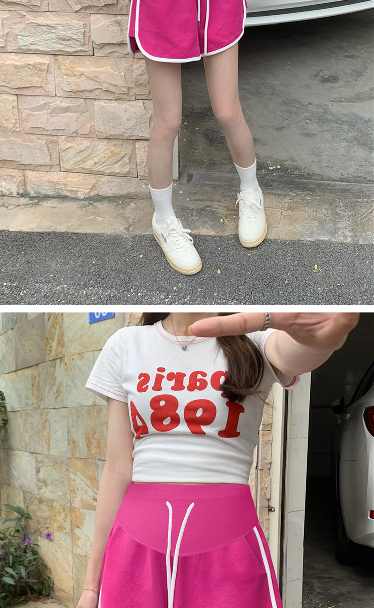 실사 임산부 세트 여름 새로운 한국 스타일 루즈핏 캐주얼 패션 임산부 투피스 세트 맨위 반바지