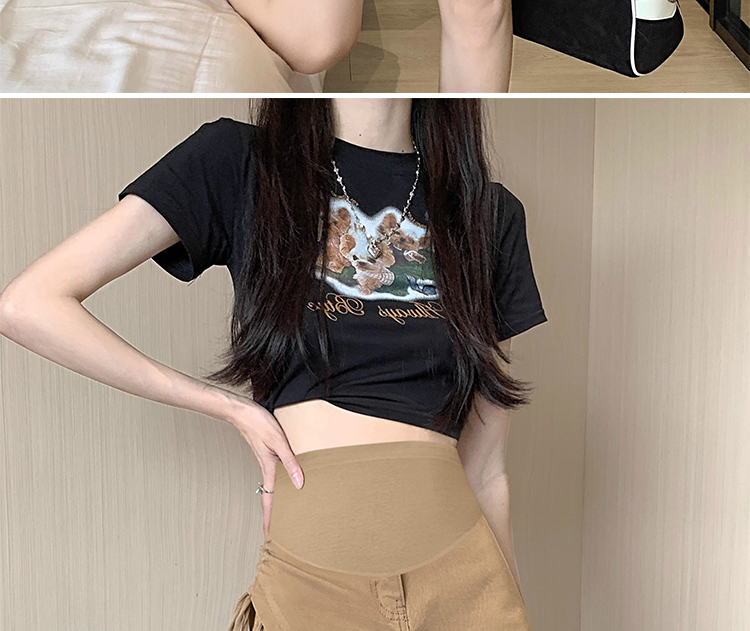 주간 고양이 품질 여름 다용도 새로운 새로운 임산부 세트 루즈핏 트렌디 엄마 인형 셔츠 정장 복부 지지 반바지