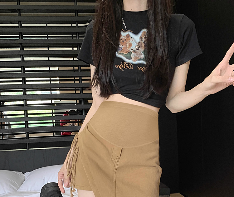 주간 고양이 품질 임산부 바지 여름 새로운 ins 트렌디 모방 데님 비스듬한 모래 워시 한국 스타일 루즈핏 복부 지지 치마 반바지