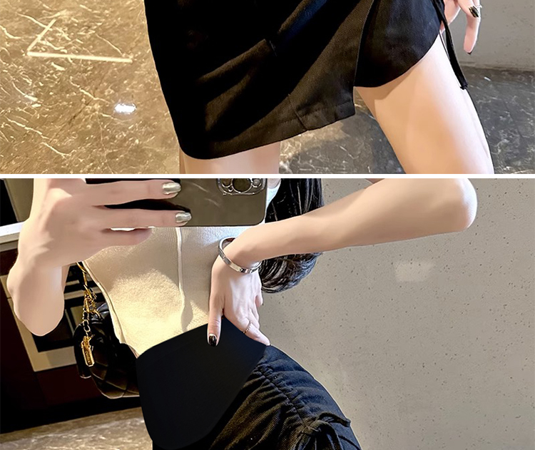 주간 고양이 품질 실사 여름 임산부 프랑스식 디자인 센스 주름 거품 소매 맨위 베이지 색 넓은 다리가 짧다. 바지