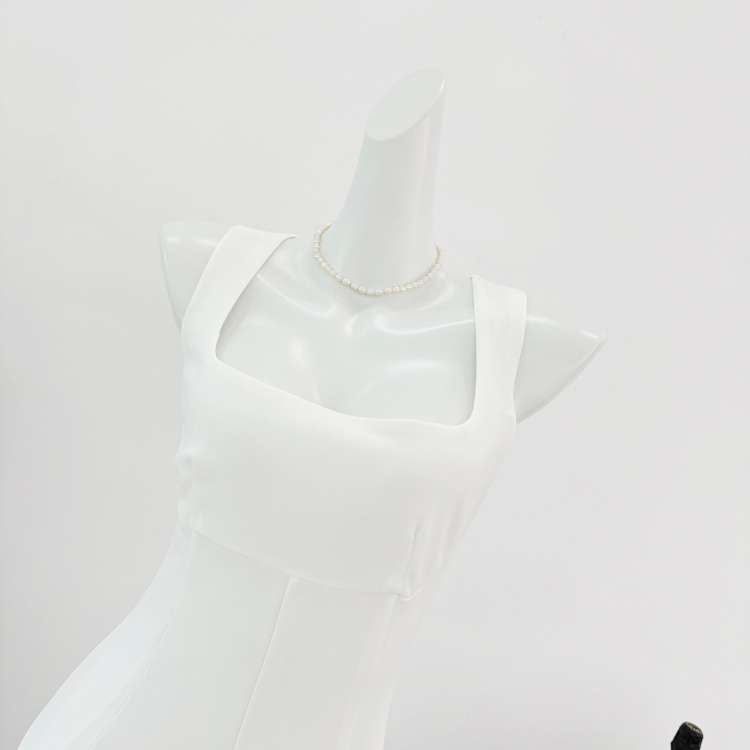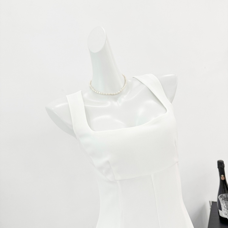 화이트 도자기 공주 화이트 허리 수축 슬림해 보이는 달콤함 천 금빛 바람 퍼프 공주 드레스 여름 품격 민소매 드레스