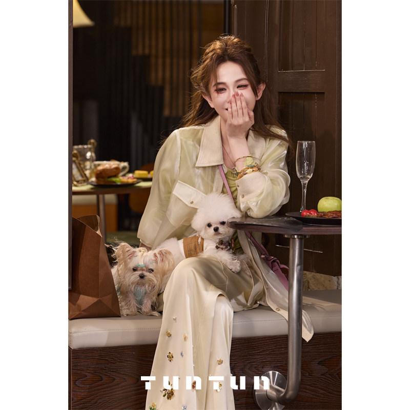 삼키기 tunt 봄 여름 청 이슬 빛 럭셔리 깃발 새로운 중식 무거운 작업 단추 구슬 자수 오픈 가디건 스택 착용 블라우스