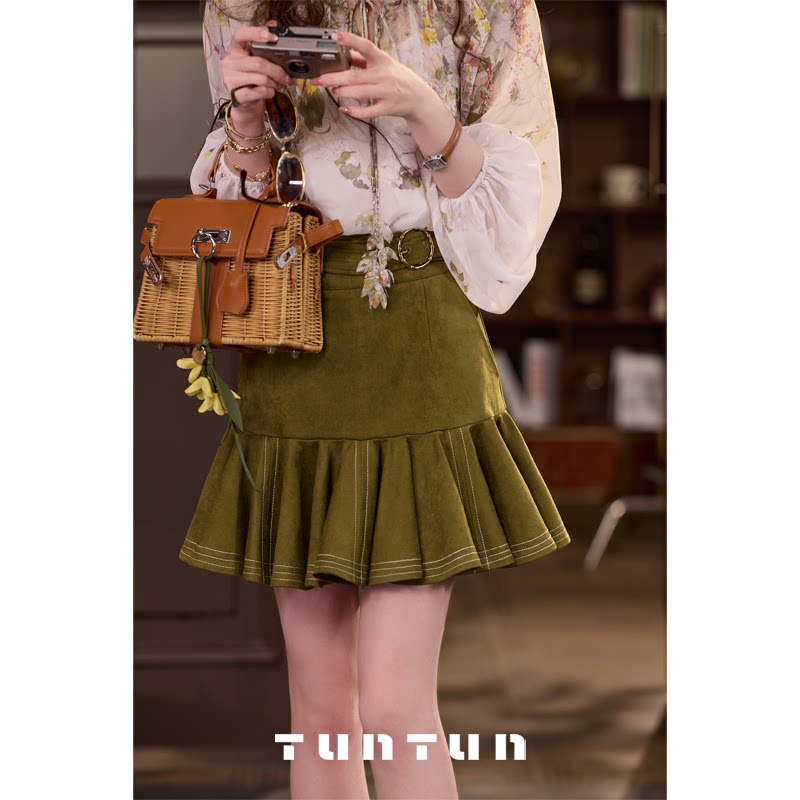 삼키기 tunt 봄 여름 游园 작은 말 절묘한 레트로 하이웨이스트 딱딱한 한 마디 스카프 행침 가을 벨트 미니 스커트