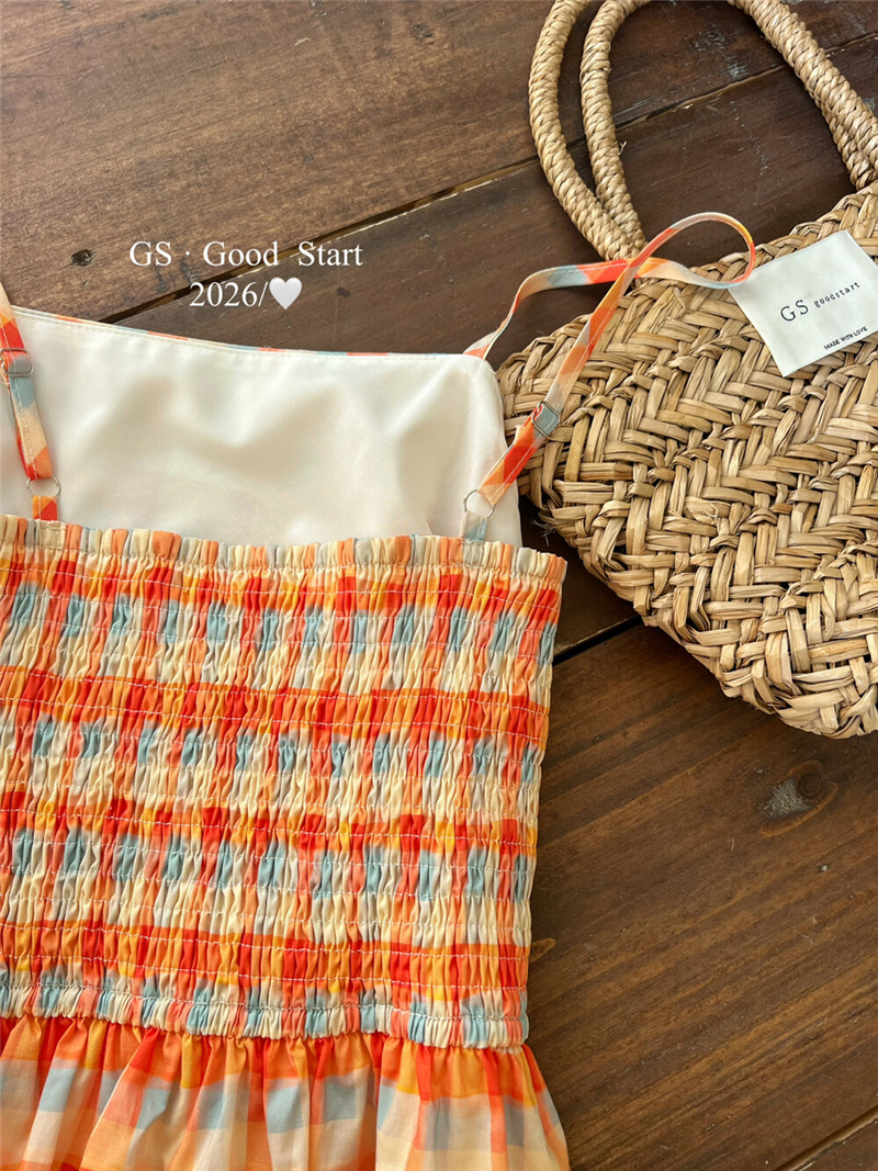 실사 정가 새로운 중식 국풍 레트로 체크무늬 슬립 여성 드레스 디자인 센스 여름 프랑스식 몸매 가꾸기 롱 스커트