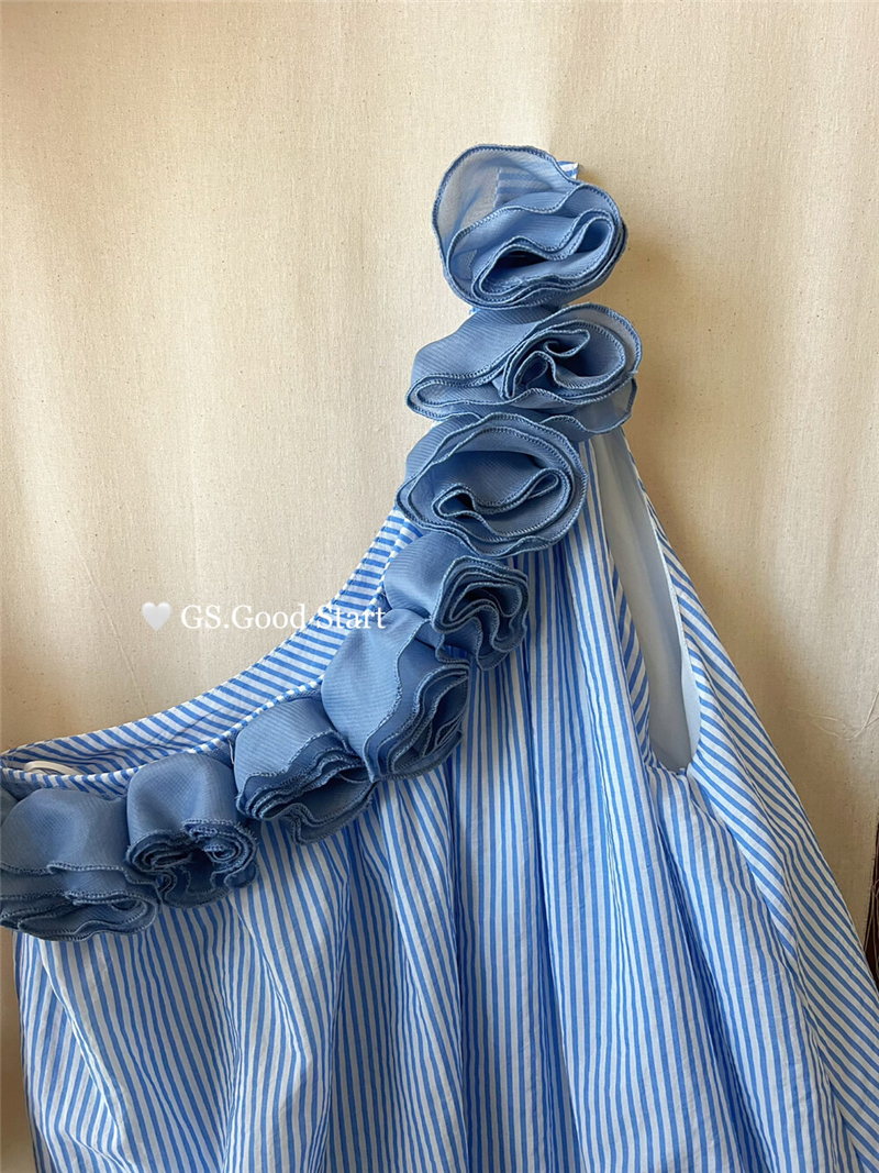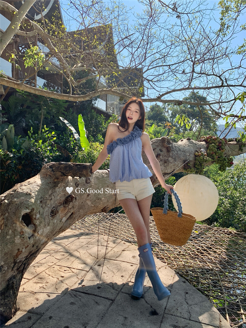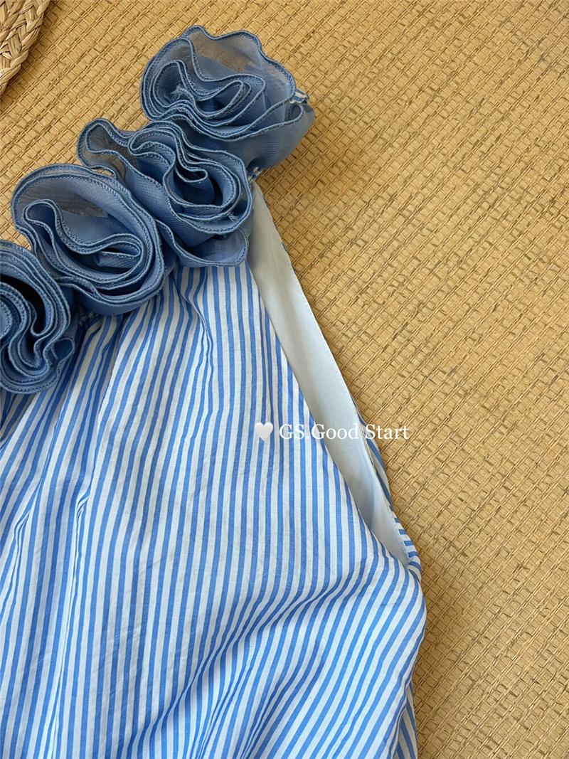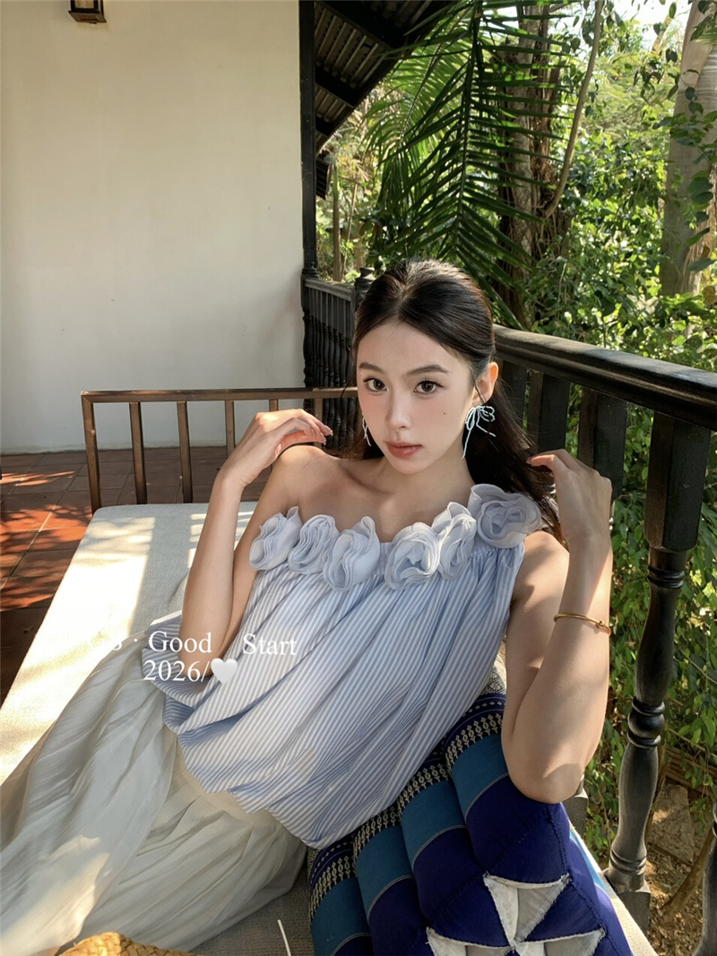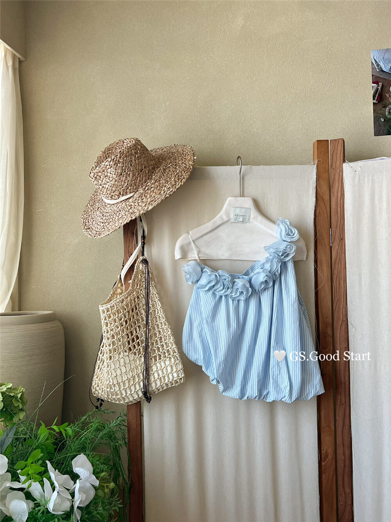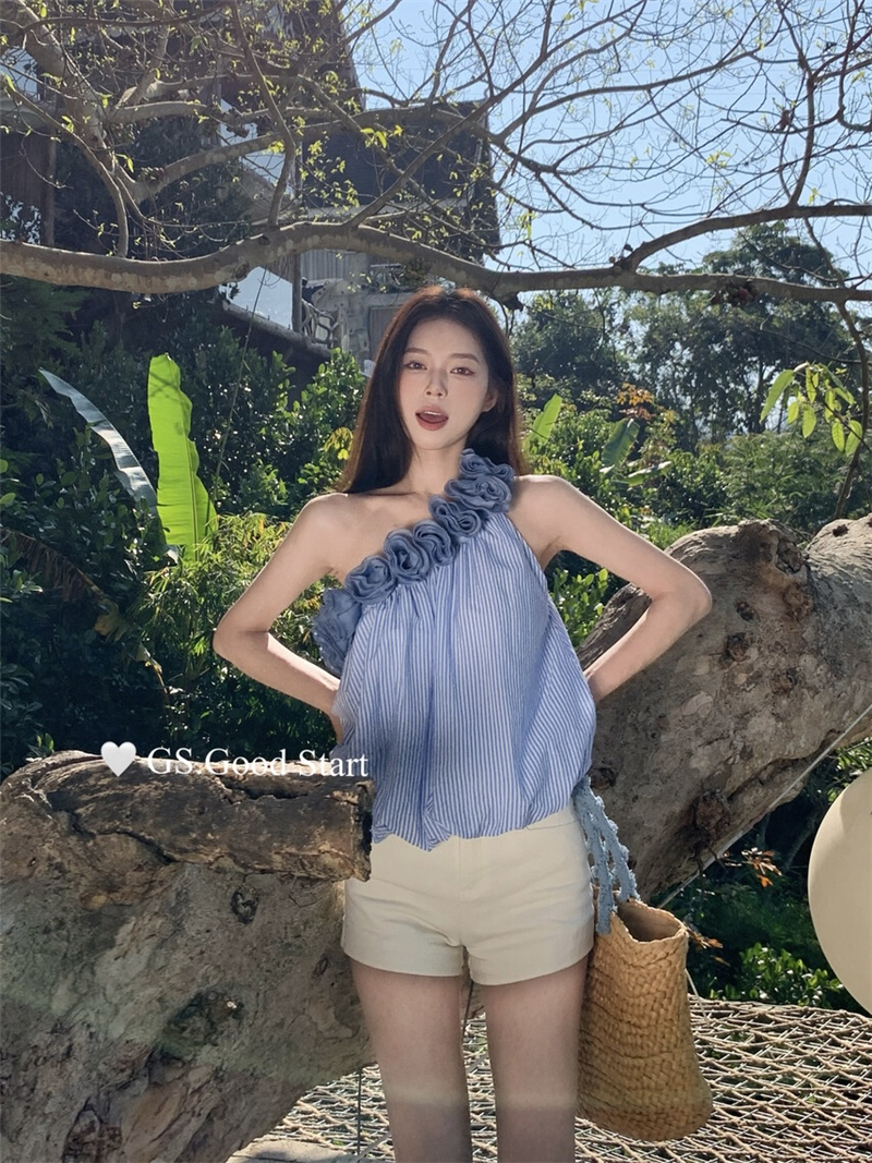 중국 전나무 숲 장미 있으라. 추적 묻기 봄 여름 프랑스식 낭만주의 3 차원 꽃 비스듬한 어깨 휴가 바람 스트라이프 작은 셔츠